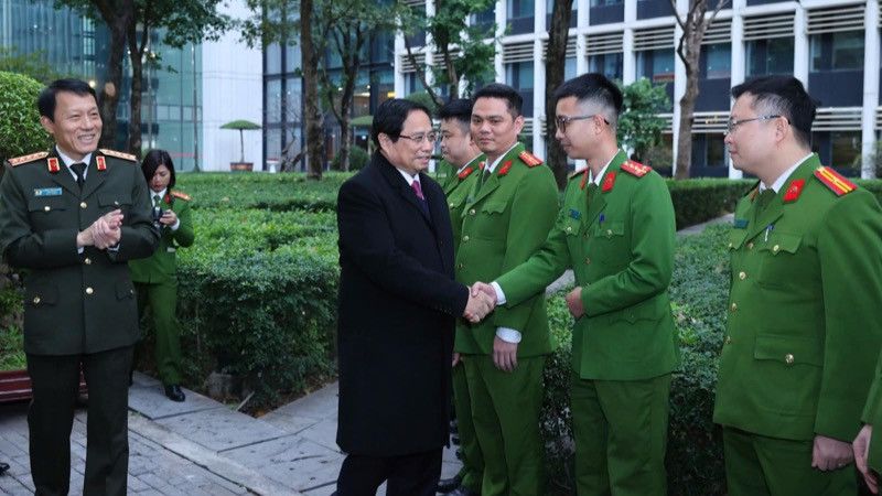 El primer ministro Pham Minh Chinh visita los oficiales y soldados del Departamento de Policía Administrativa para el Orden Social, del Ministerio de Seguridad Pública.