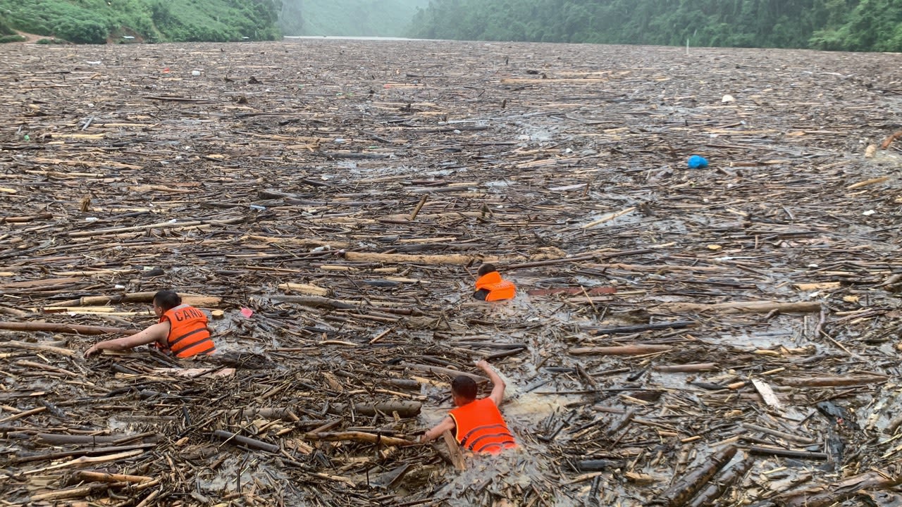 Policías de la provincia de Dien Bien buscan a personas desaparecidas en el lago Long Tao. (Foto: cand.com.vn)
