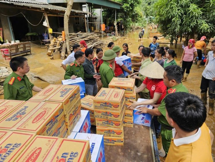 La Policía de la provincia de Lao Cai lleva suministros a las aldeas gravemente afectadas por la tormenta número 3 (Yagi).