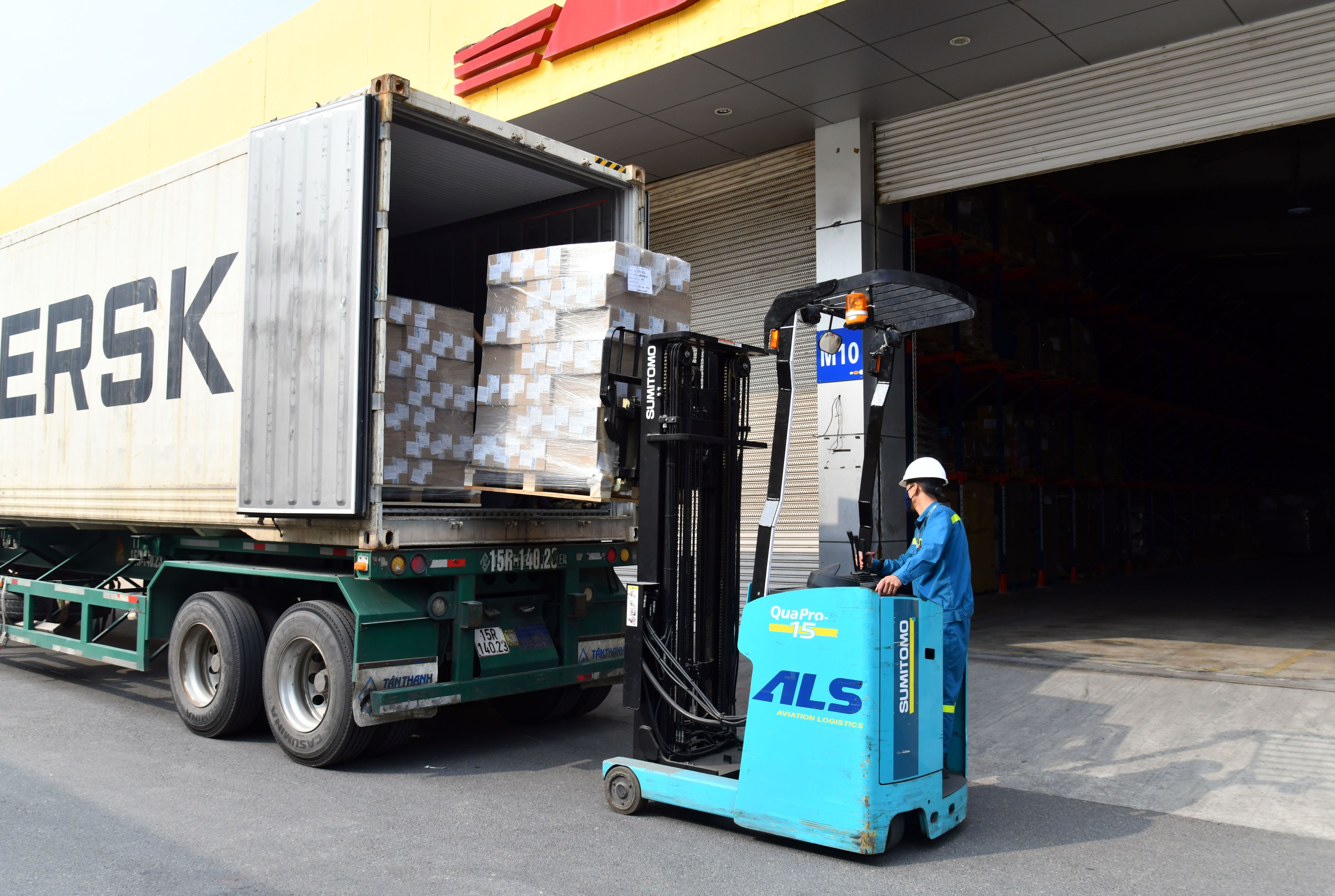Carga y descarga de mercancías en el puerto de ICD My Dinh. (Foto: Dang Anh)