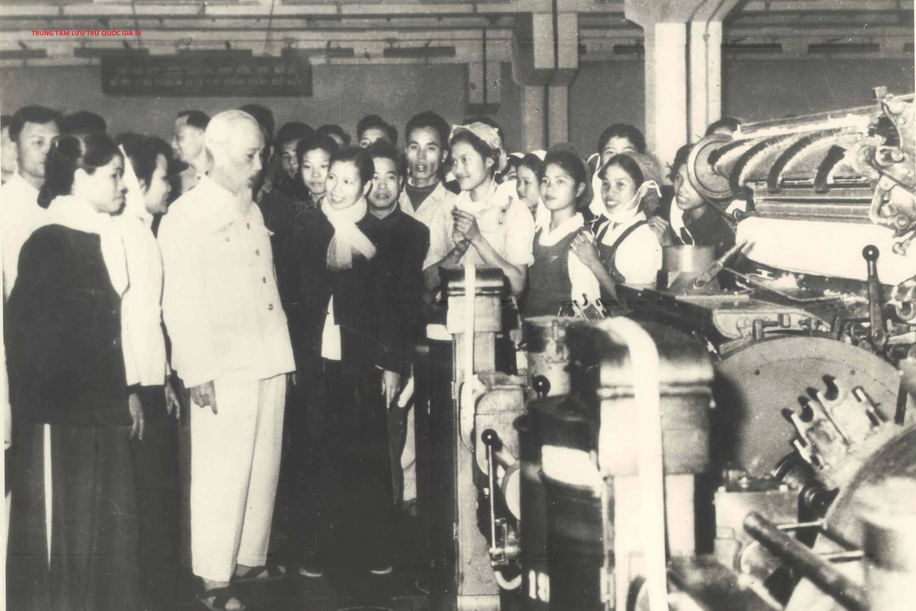 El Presidente Ho Chi Minh visita la fábrica de textiles 8 de marzo de Hanói con motivo del Día Internacional de la Mujer, el 8 de marzo de 1965. (Foto: Centro Nacional de Archivos III - Departamento de Archivos y Registros Estatales de Vietnam)