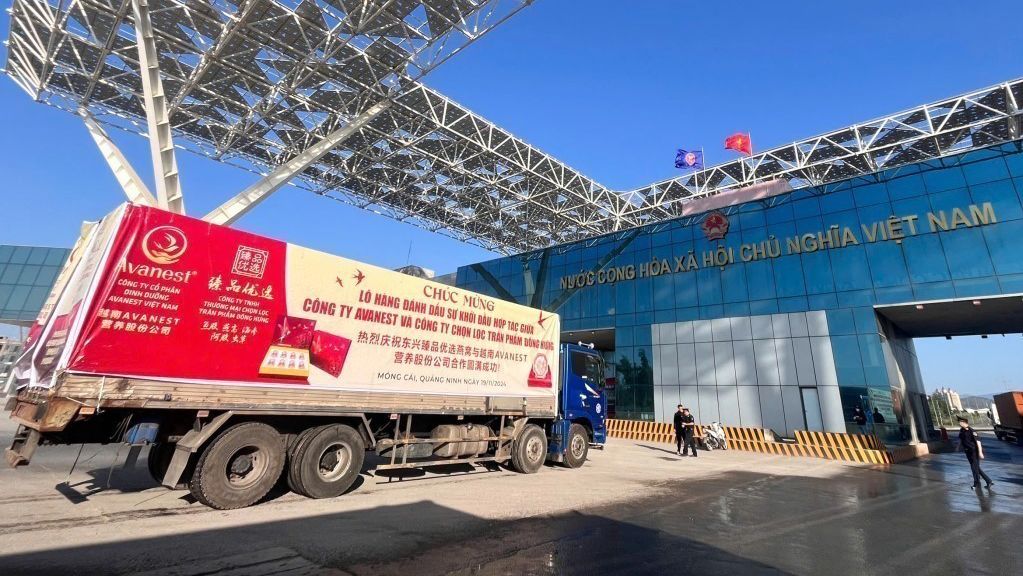 El 20 de noviembre de 2024, una empresa vietnamita realiza la declaración aduanera del primer lote de nidos de golondrina en el puerto fronterizo de Mong Cai, en la provincia septentrional de Quang Ninh, para su exportación a China a través del puente Bac Luan II. (Foto: VNA)