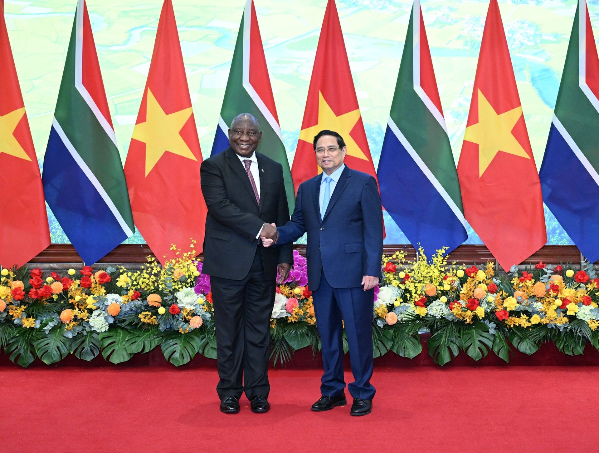 El primer ministro de Vietnam, Pham Minh Chinh, se reúne con el presidente de Sudáfrica, Matamela Cyril Ramaphosa, durante su visita de Estado a Hanói el 23 de octubre de 2025. (Foto: Tran Hai)