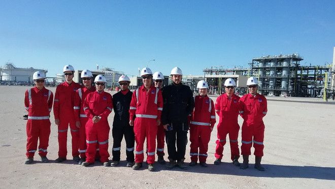 Expertos vietnamitas y argelinos en la mina de Bir Seba. El éxito de la empresa conjunta de petróleo y gas de Bir Seba se considera un modelo de cooperación entre ambos países. (Foto: VNA)