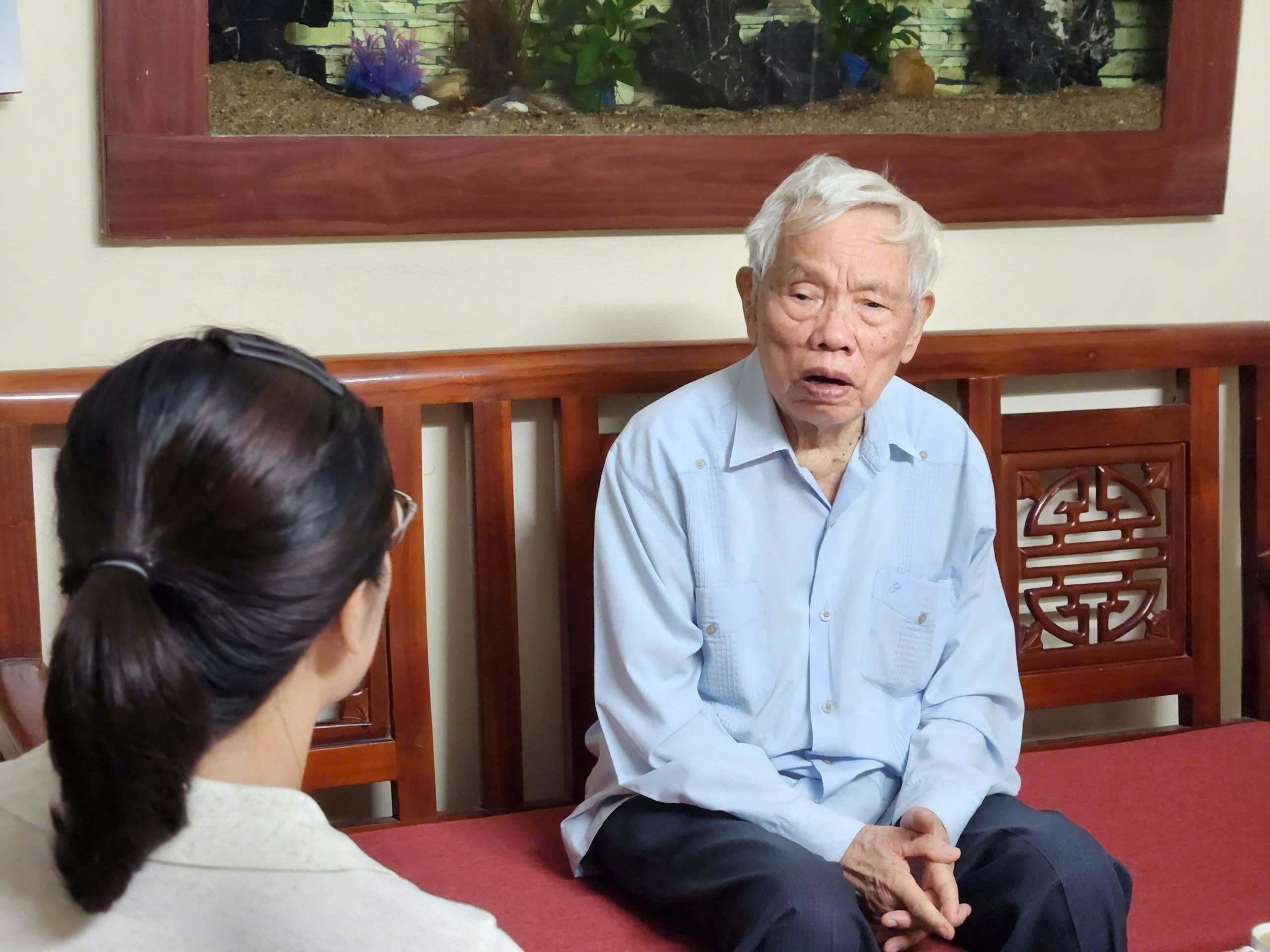 El periodista Vu Van Au conversa con la reportera del periódico Nhan Dan. (Foto: Hai Anh)