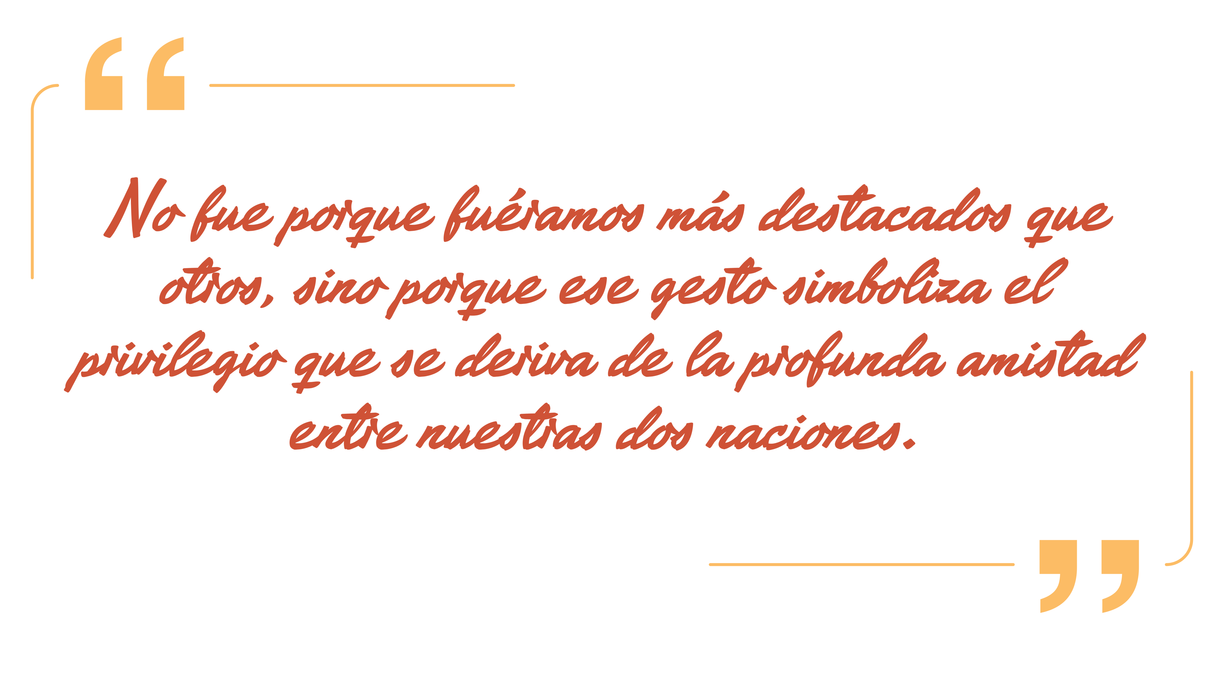 Conmovido, el periodista expresó: “No fue porque fuéramos más destacados que otros, sino porque ese gesto simboliza el privilegio que se deriva de la profunda amistad entre nuestras dos naciones”.