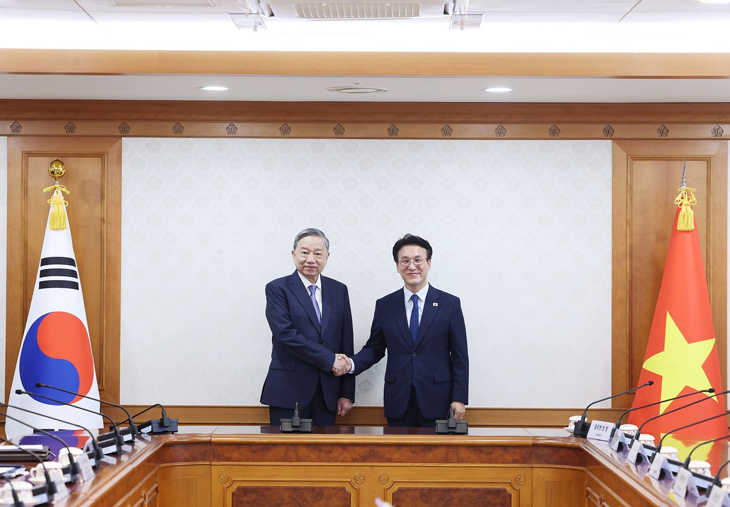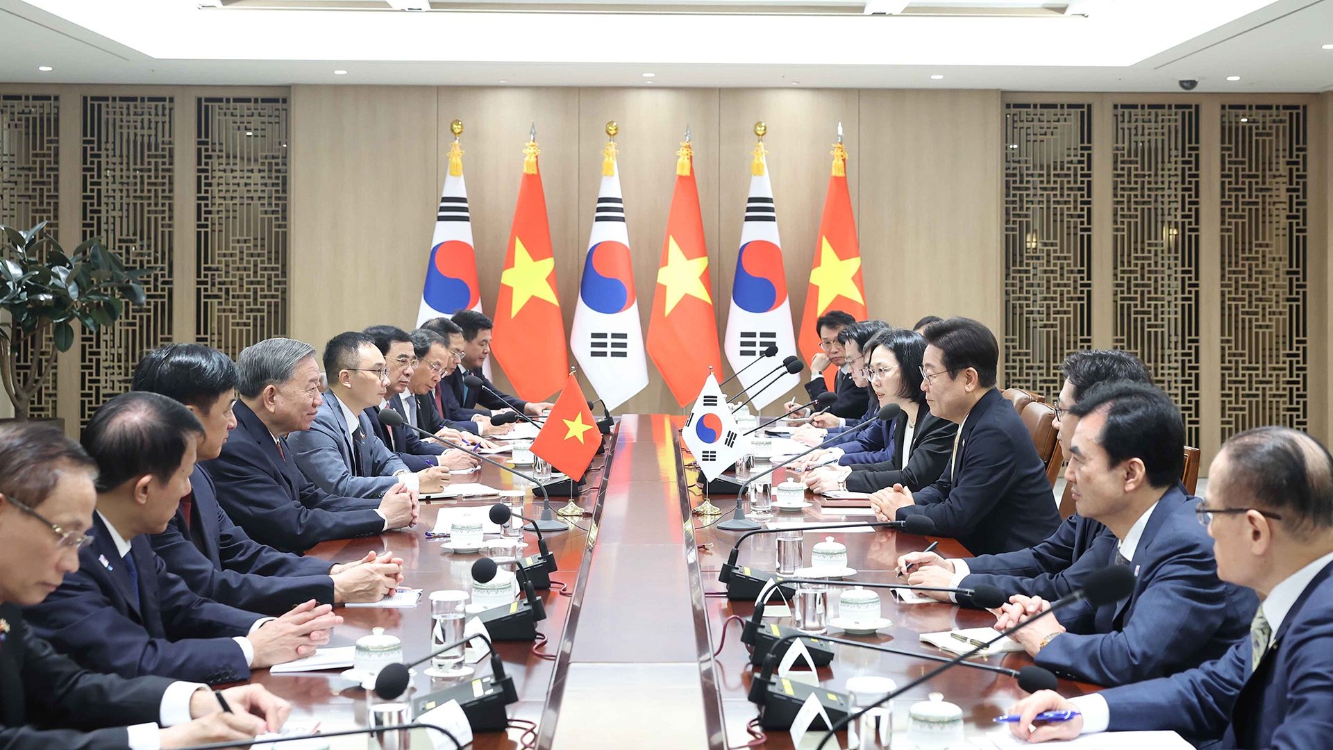 En la conversación de alto nivel con el presidente surcoreano, Lee Jae-myung, el secretario general del PCV, To Lam, expresó su aprecio por la invitación extendida por el mandatario surcoreano a él, a su esposa y a la delegación de alto nivel de Vietnam para visitar Corea del Sur inmediatamente después de asumir el cargo, lo que refleja la gran importancia y alta prioridad que Corea del Sur concede a Vietnam, así como a la Asociación Estratégica Integral binacional. To Lam reafirmó que Vietnam otorga una permanente importancia a  sus lazos con Corea del Sur en  su política exterior.