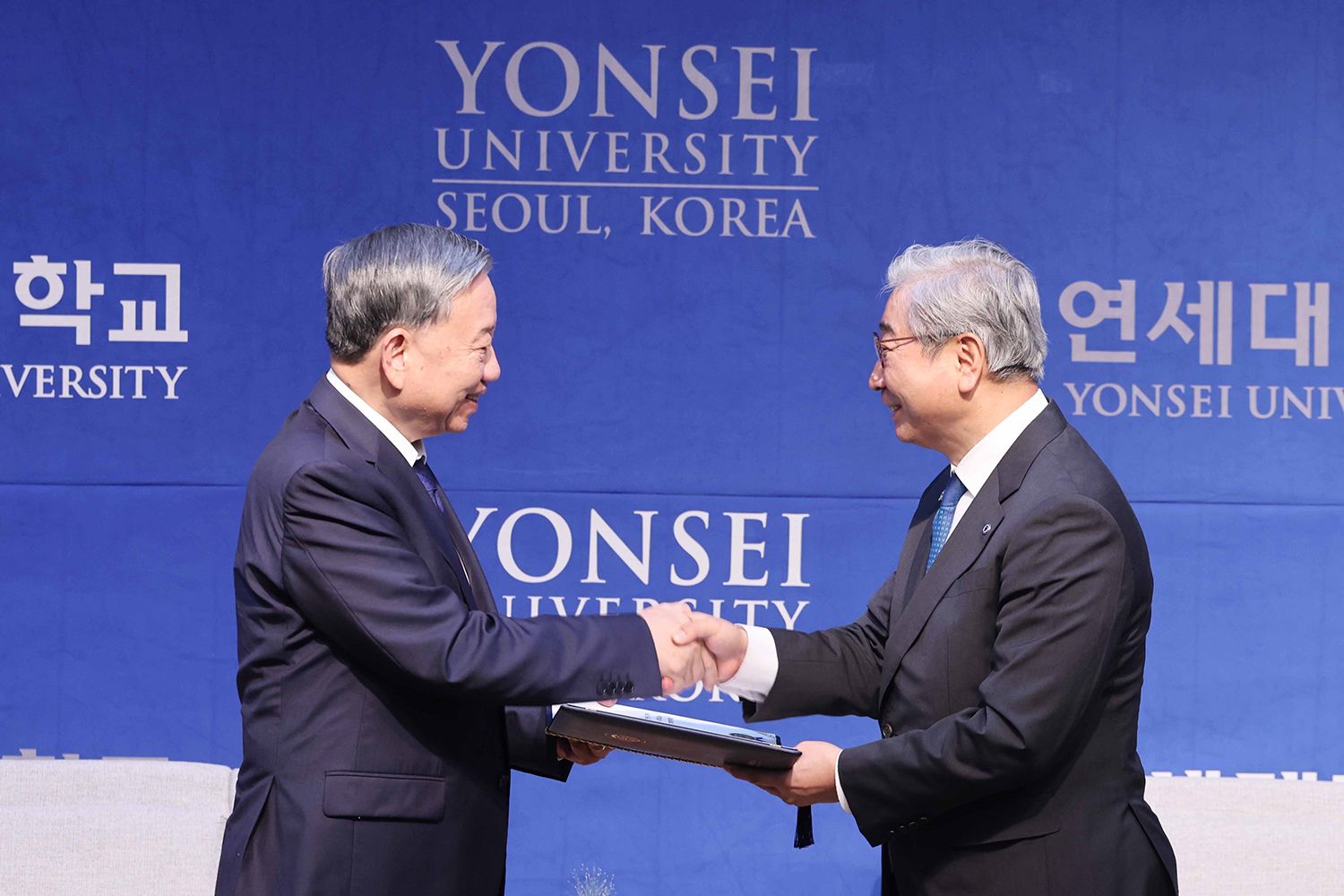 El secretario general del PCV, To Lam, recibe el título de Doctor Honoris Causa de la Universidad de Yonsei. (Foto: VNA)