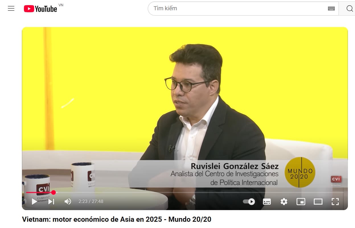 En el marco de esta labor, Mundo 20/20, conducido por la propia Adianez, sostuvo una entrevista con el doctor Ruvislei González Sáez, director del Programa Sectorial de Relaciones Internacionales del Centro de Investigaciones de Política Internacional de Cuba (CIPI) y vicepresidente permanente de la Asociación de Amistad Cuba-Vietnam. La conversación giró en torno al papel de Vietnam como uno de los principales motores de crecimiento de Asia en el año 2025.