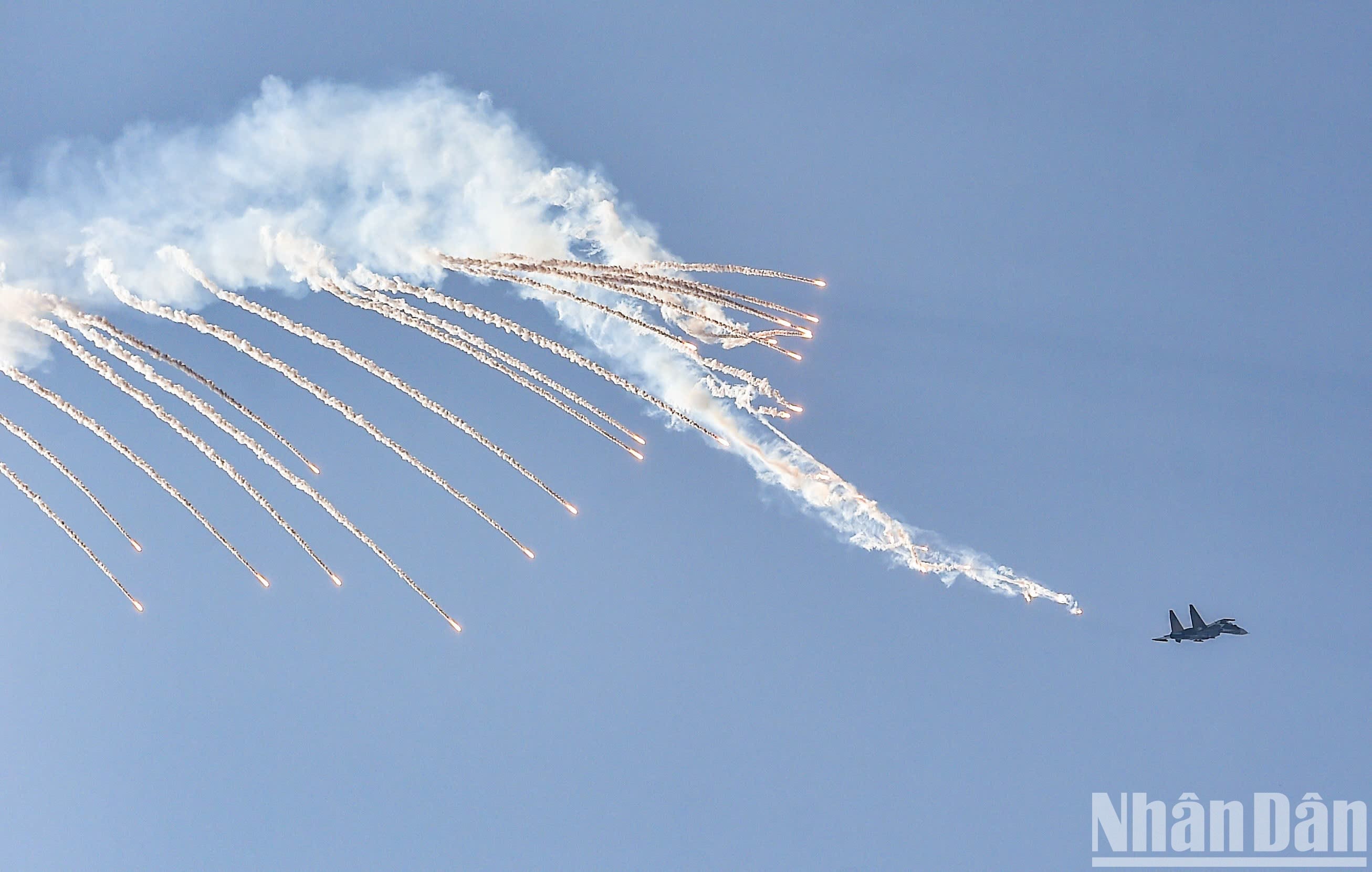 Su-30MK2 realiza una trampa de calor en el cielo. (Foto: Thanh Dat)