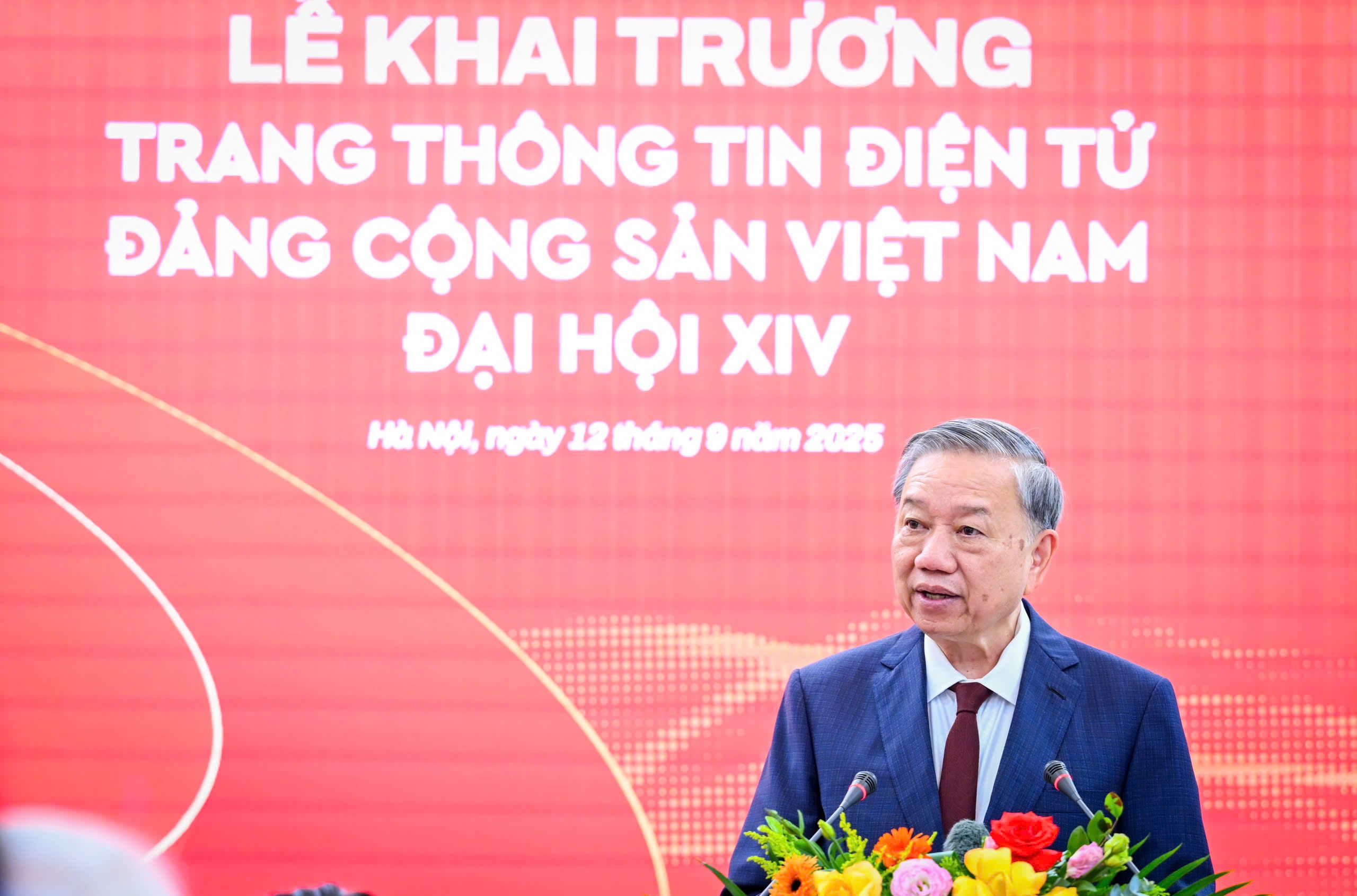 El secretario general del Partido Comunista de Vietnam (PCV), To Lam, asistió el 12 de septiembre, en la sede del periódico Nhan Dan (Pueblo), a la ceremonia inaugural de un portal de este diario sobre el XIV Congreso Nacional del PCV. A continuación, se les presenta el texto íntegro del discurso pronunciado por el dirigente.