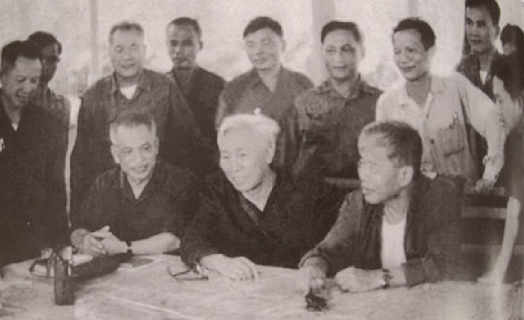 El compañero Van Tien Dung y sus compañeros en el Alto Mando de la Campaña de Ho Chi Minh, en abril de 1975.