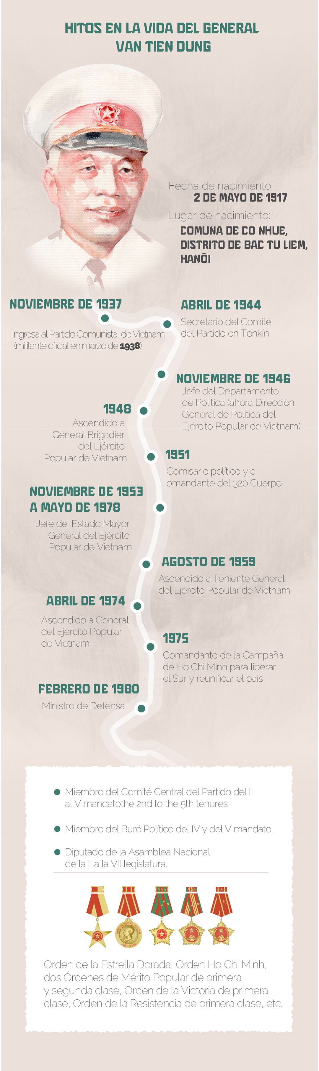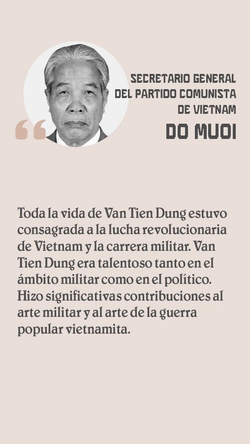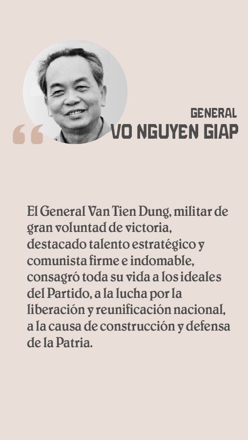 El General Van Tien Dung, militar de gran voluntad de victoria, destacado talento estratégico y comunista firme e indomable, consagró toda su vida a los ideales del Partido, a la lucha por la liberación y reunificación nacional, a la causa de construcción y defensa de la Patria.