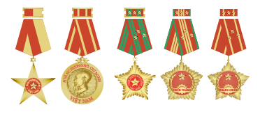 Por sus grandes contribuciones a la causa de la liberación nacional, la construcción y la defensa de la Patria, el General Van Tien Dung fue condecorado con la Orden de la Estrella Dorada, la Orden Ho Chi Minh y muchas nobles distinciones del Partido y del Estado.
