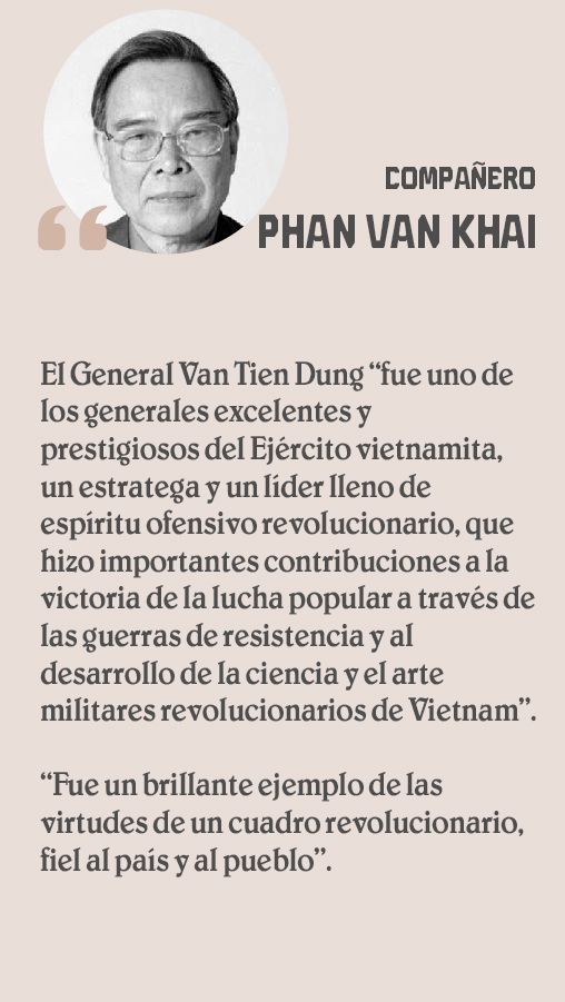 El General Van Tien Dung “fue uno de los generales excelentes y prestigiosos del Ejército vietnamita, un estratega y un líder lleno de espíritu ofensivo revolucionario, que hizo importantes contribuciones a la victoria de la lucha popular a través de las guerras de resistencia y al desarrollo de la ciencia y el arte militares revolucionarios de Vietnam”.