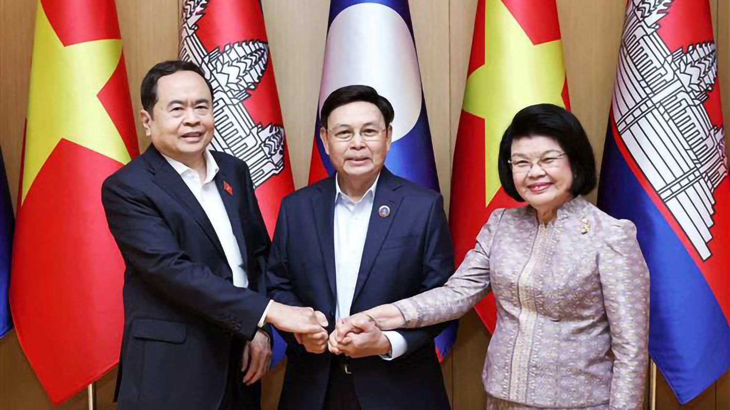 El presidente de la Asamblea Nacional de Vietnam, Tran Thanh Man; y sus similares de Laos, Saysomphone Phomvihane, y de Camboya, Samdech Khuon Sudary. (Foto: VNA)