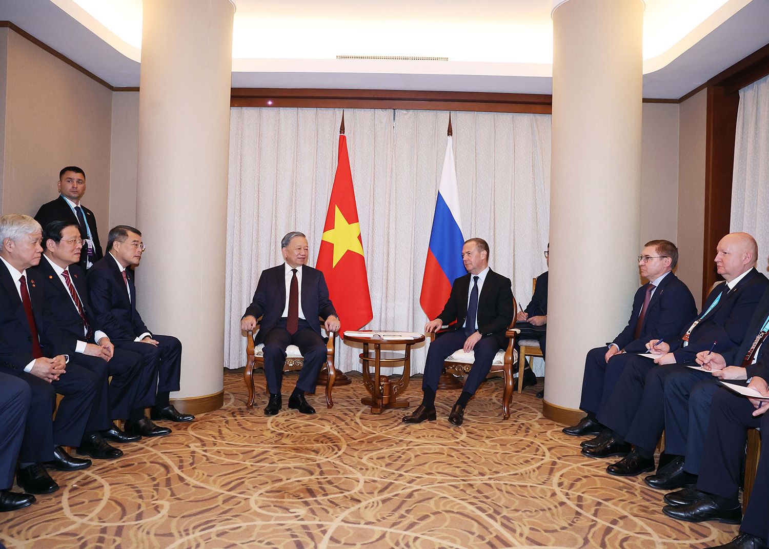 En el encuentro entre el secretario general To Lam y el presidente del Partido Rusia Unida y vicepresidente del Consejo de Seguridad de Rusia, Dmitry Medvédev, ambos destacaron que los dos Partidos, Estados y pueblos otorgan gran importancia a la amistad tradicional y a la asociación estratégica integral bilateral.