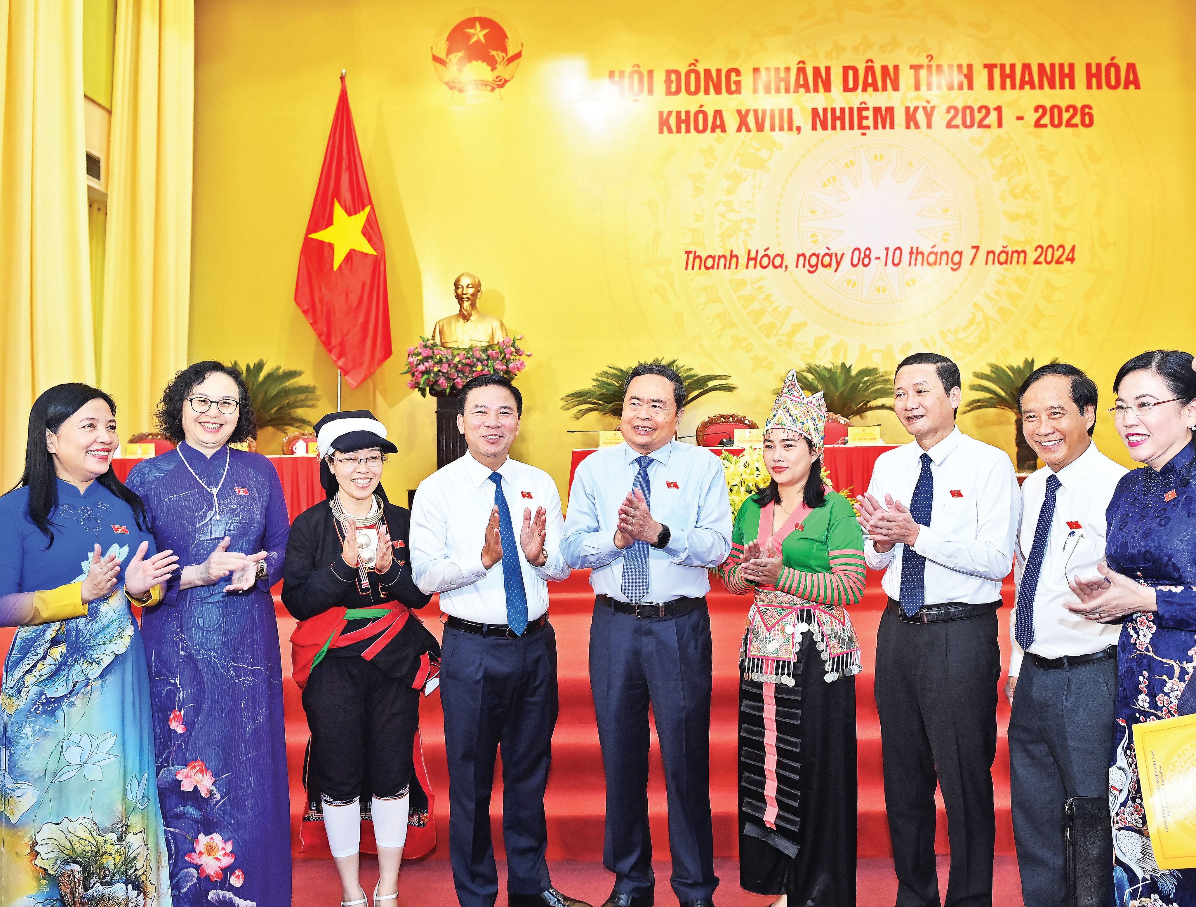 El presidente de la Asamblea Nacional de Vietnam, Tran Thanh Man, y los delegados al 20 Período de Sesiones del Consejo Popular de la provincia de Thanh Hoa. (Foto: Duy Linh)