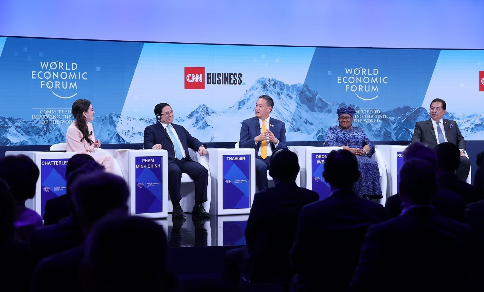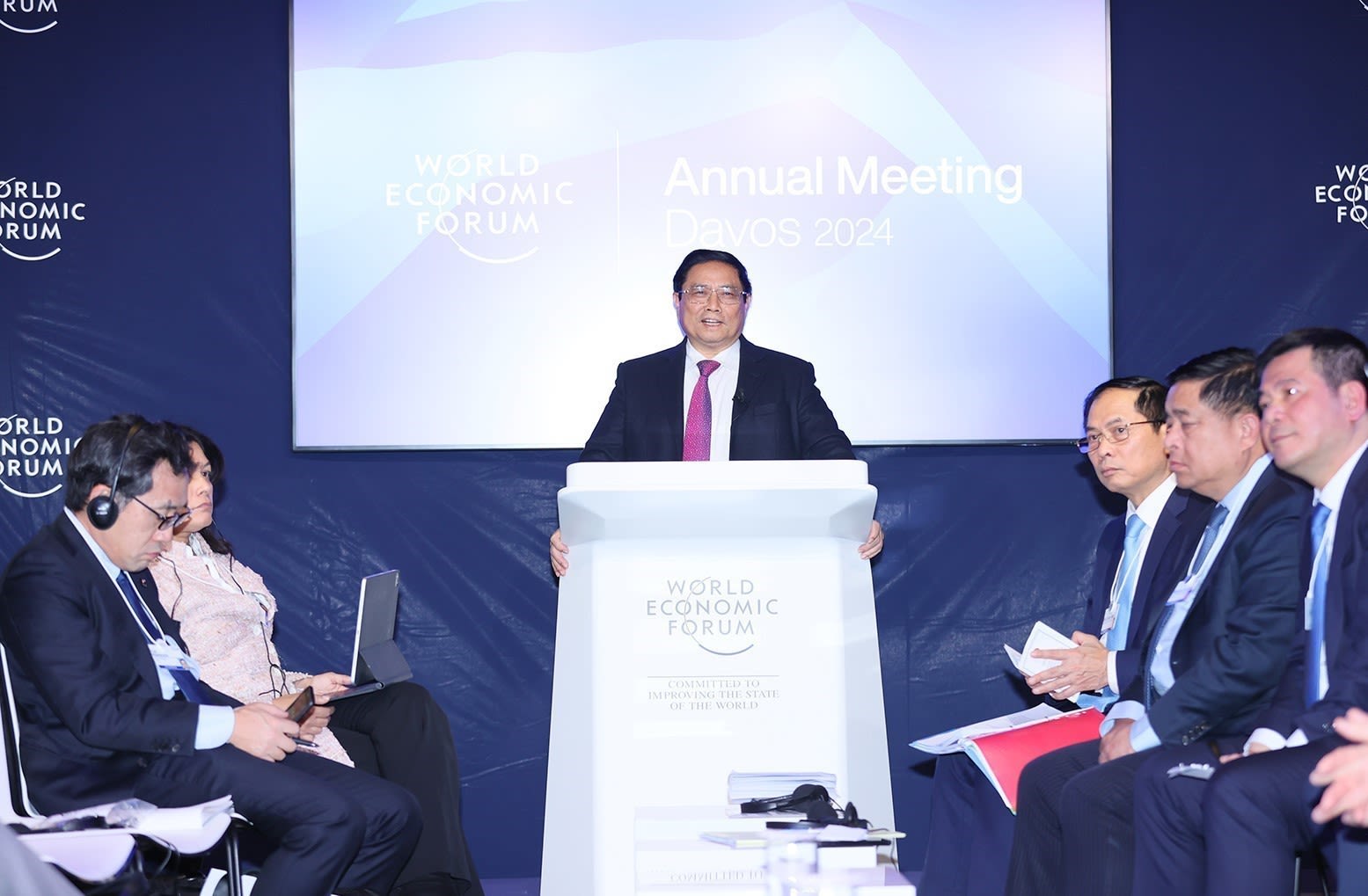 El primer ministro de Vietnam, Pham Minh Chinh, asiste como invitado principal del FEM al Diálogo política “Vietnam: Orientando una visión global”, el 16 de enero de 2024, en Davos. Foto: VNA
