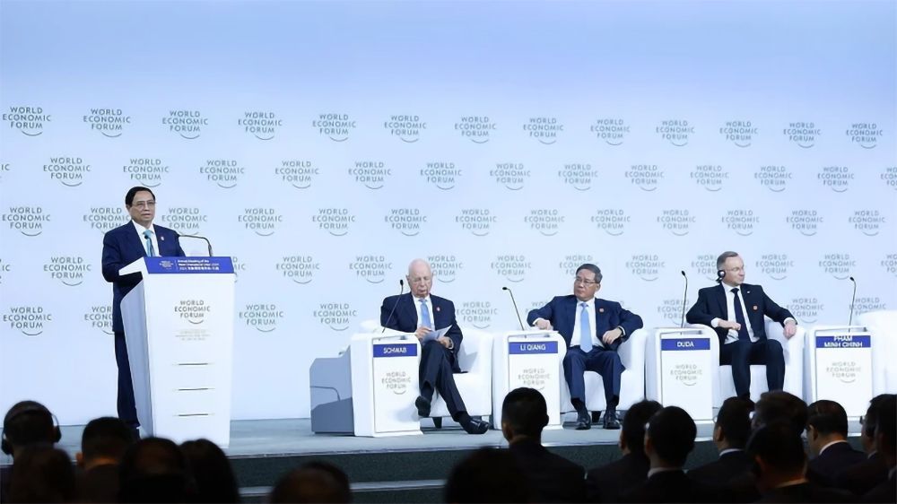 El primer ministro de Vietnam, Pham Minh Chinh, habla en la sesión plenaria de la 15ª Reunión Anual de los Nuevos Campeones del Foro Económico Mundial, que tuvo lugar el 25 de junio de 2024 en China. (Foto: VNA)