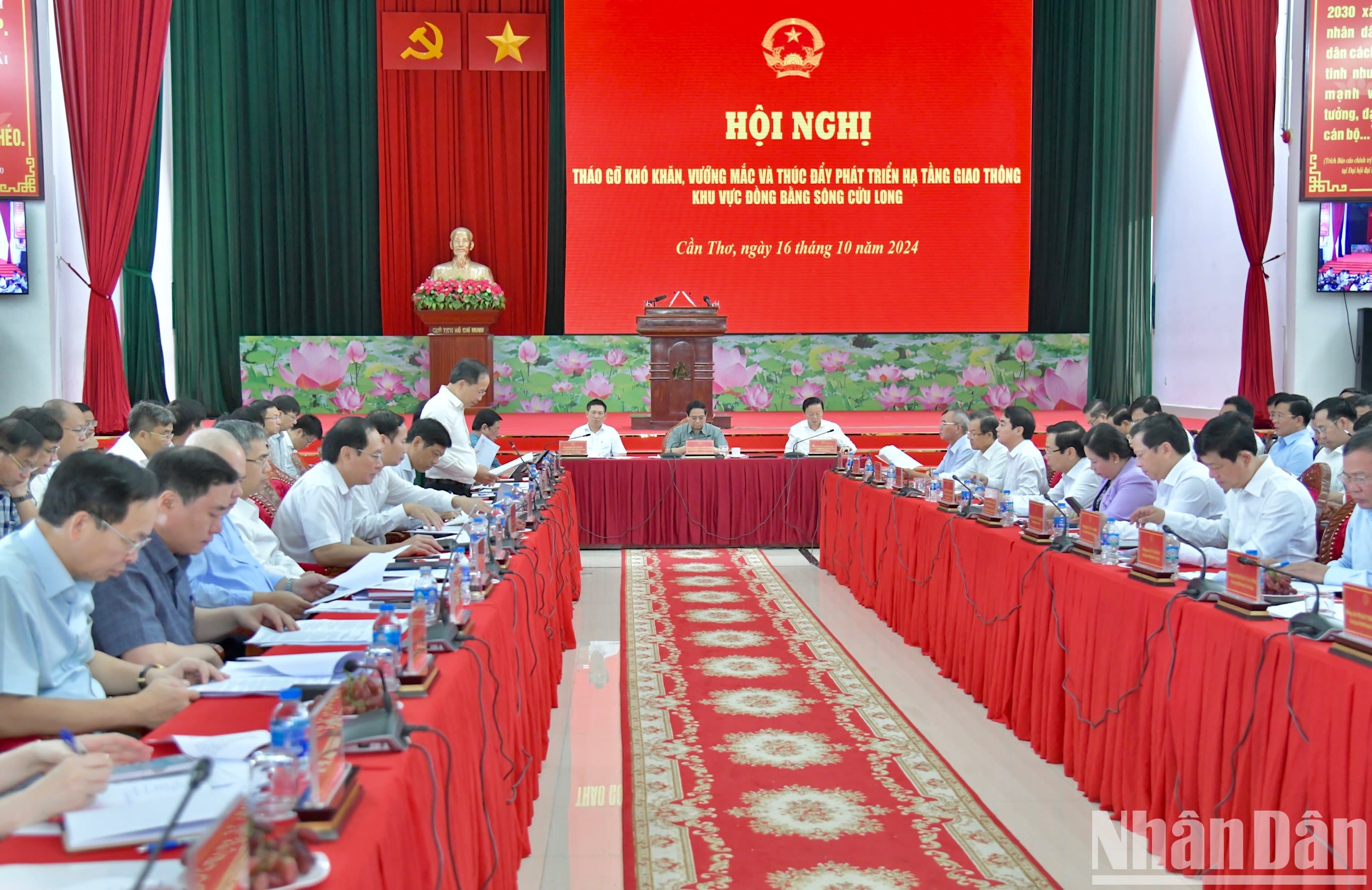 El primer ministro Pham Minh Chinh preside una conferencia para eliminar dificultades y obstáculos y promover el desarrollo de la infraestructura de transporte en la región del Delta del Mekong, celebrada el 16 de octubre de 2024 en la ciudad de Can Tho.