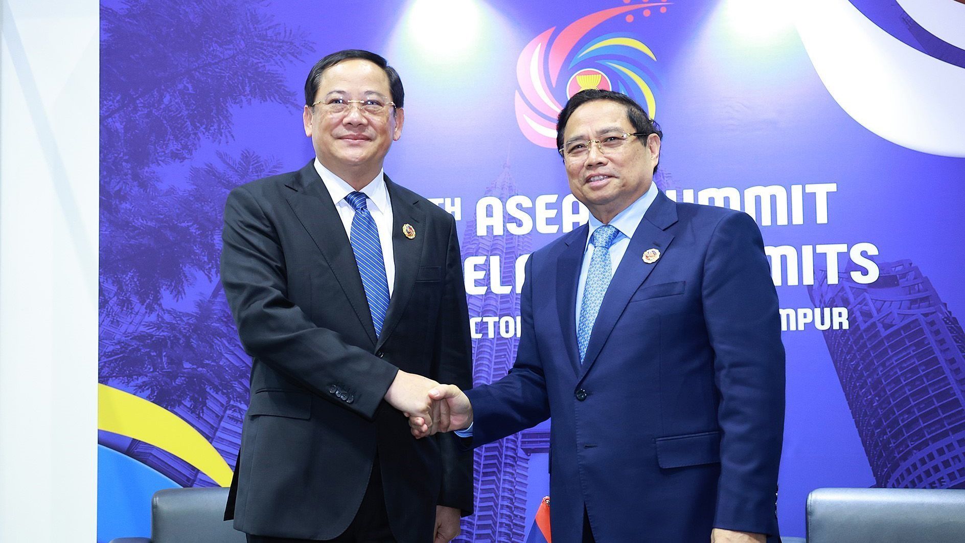 El primer ministro de Vietnam, Pham Minh Chinh, se reúne con su homólogo de Laos, Sonexay Siphandone. (Foto: VNA)