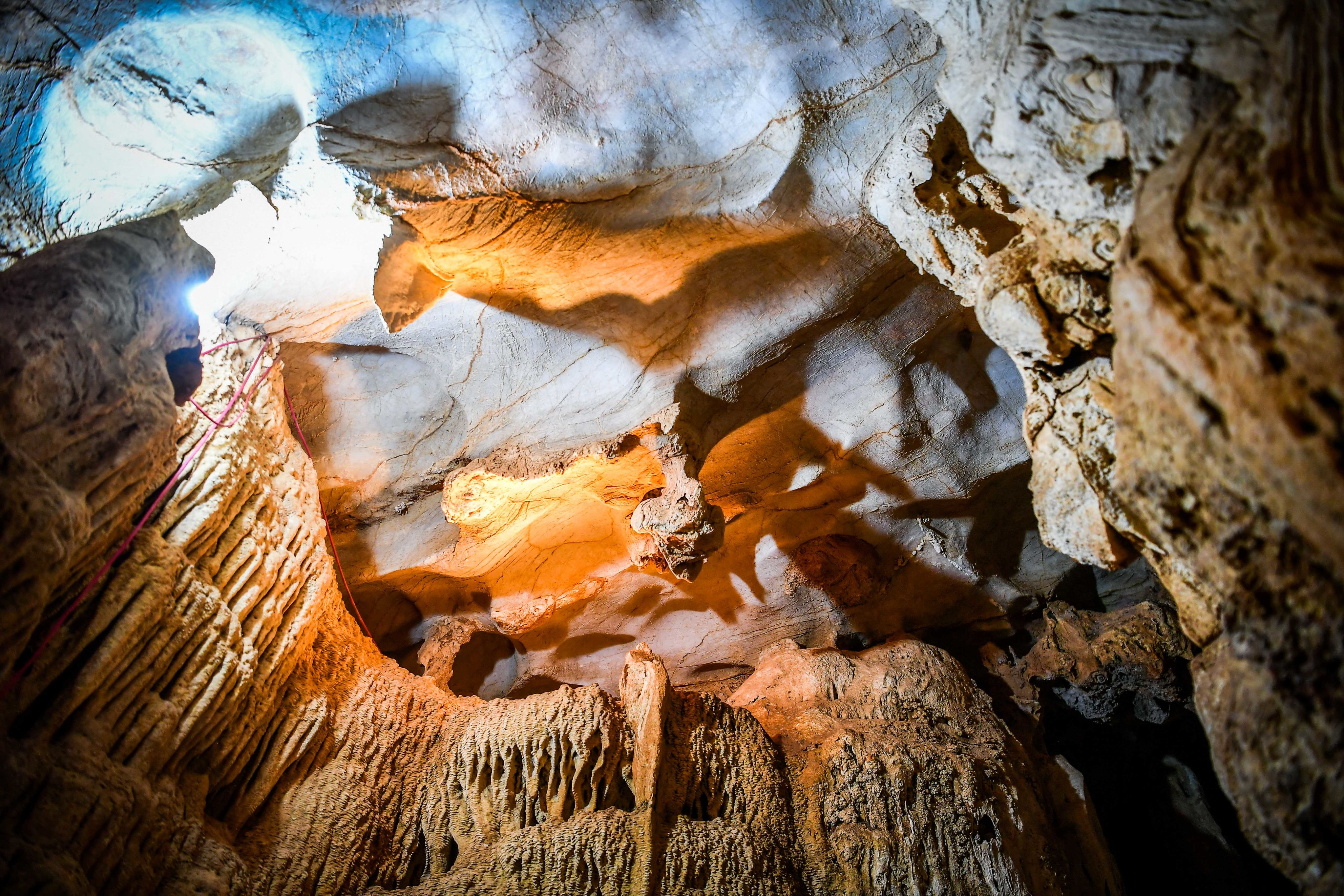 La cueva posee una asombrosa hermosura con estalactitas de diversas formas como de pollo salvaje, sapo, dragón y cascada, abriendo un mundo de cuento de hadas.