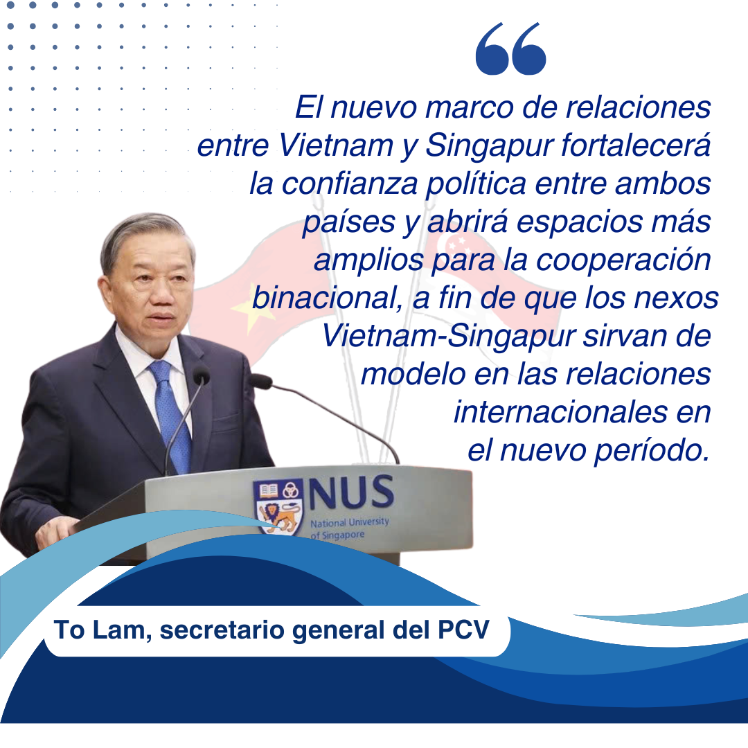 El secretario general del Partido Comunista de Vietnam (PCV), To Lam, y su cónyuge, acompañados de una delegación de alto nivel, acaban de concluir con éxito una visita de Estado a Indonesia y visitas oficiales a la Secretaría de la Asociación de Naciones del Sudeste Asiático (Asean) y a Singapur, en respuesta a invitaciones del presidente indonesio y líder del Partido del Movimiento Gran Indonesia, Prabowo Subianto; del secretario general de la Asean, Kao Kim Hourn, y del primer ministro y secretario general del Partido de Acción Popular de Singapur (PAP), Lawrence Wong.