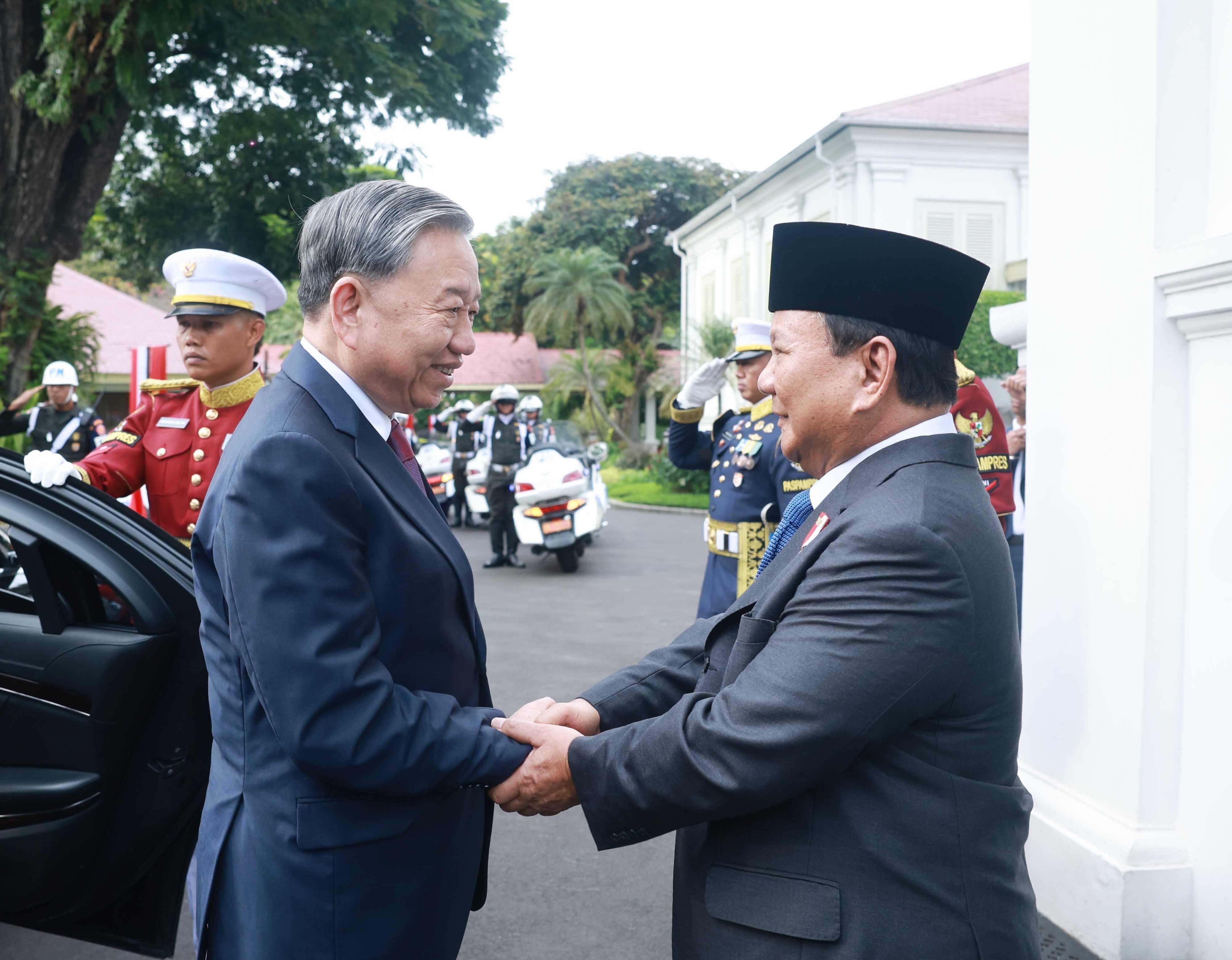 El presidente de Indonesia, Prabowo Subianto, recibe al secretario general del PCV, To Lam. (Foto: VNA)