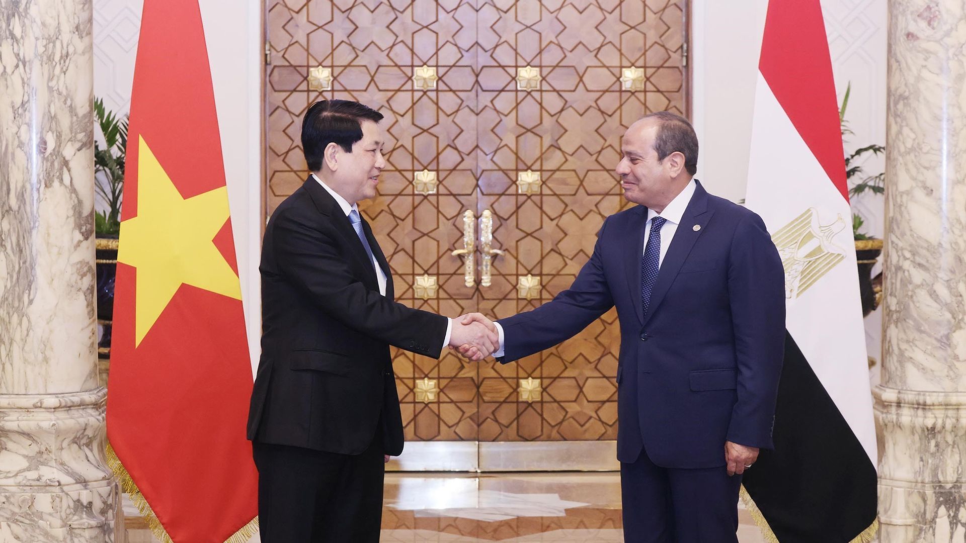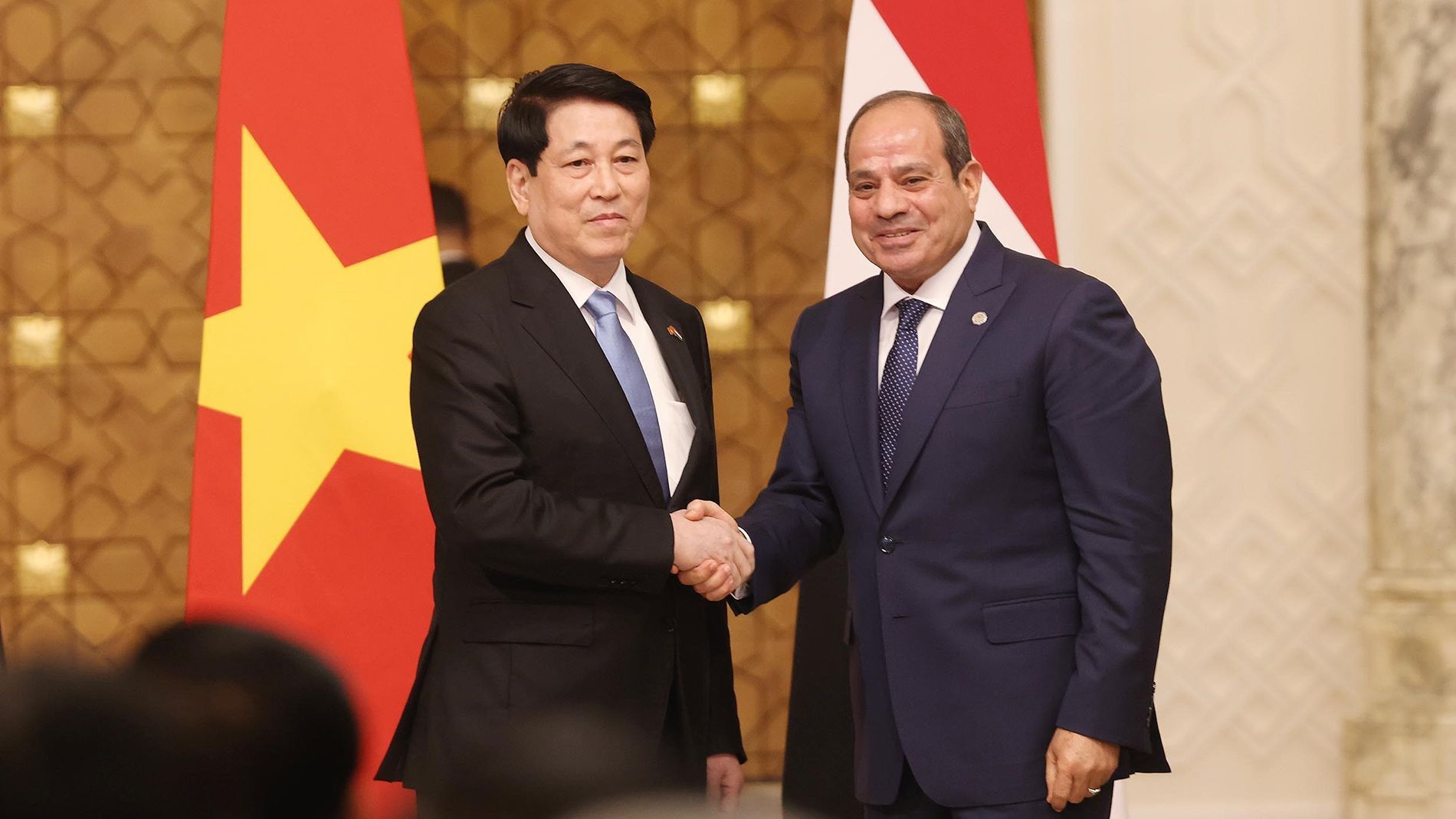 A nombre del pueblo egipcio, el presidente Abdel Fattah El-Sisi expresó su alegría por recibir a su similar vietnamita y su cónyuge. El mandatario egipcio afirmó que la visita de Estado del presidente Luong Cuong y su comitiva de alto rango representaba un precedente y daba inicio a una nueva etapa de cooperación en las relaciones bilaterales tras más de 60 años de relaciones diplomáticas.