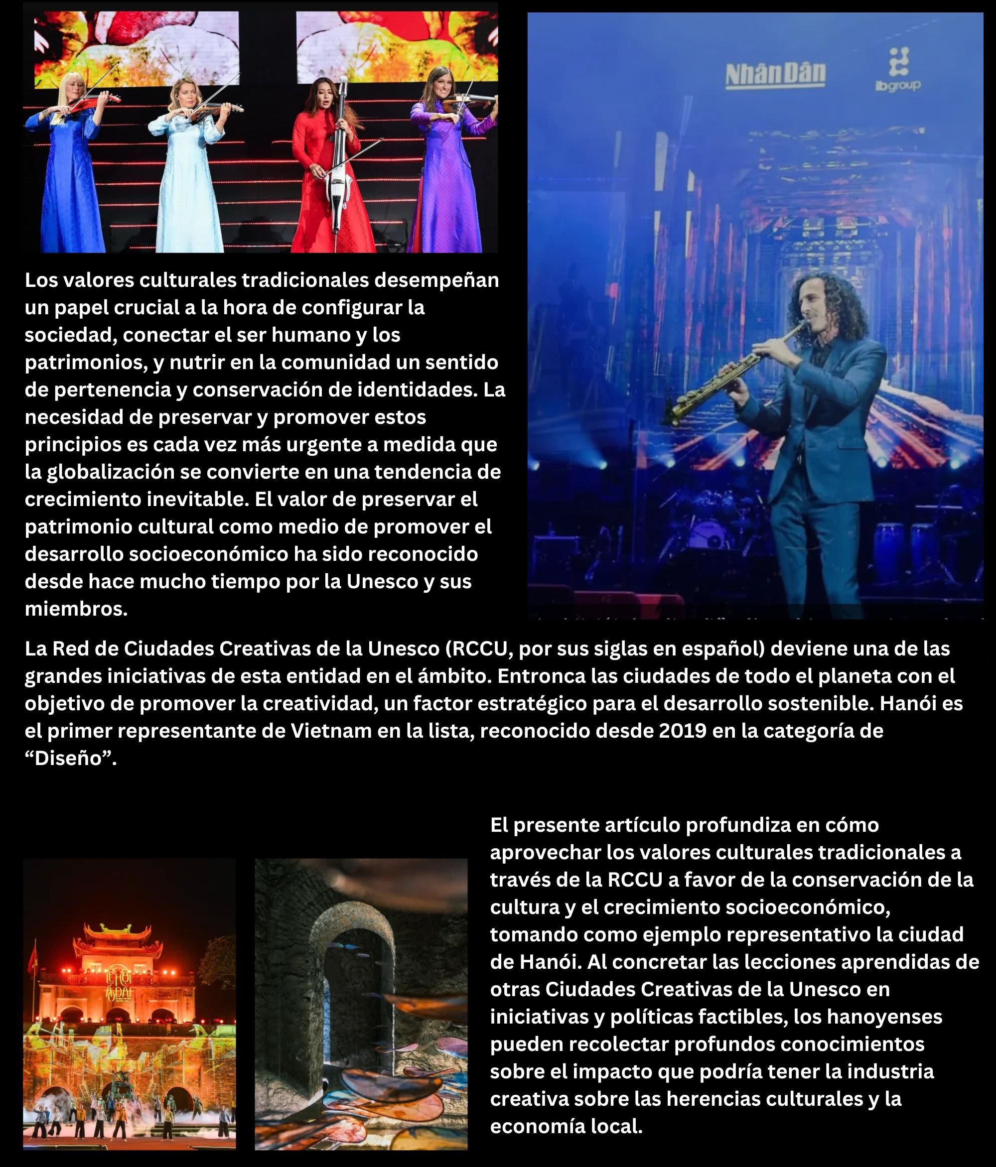 El fomento de los valores culturales tradicionales a través de la RCCU ofrece a las ciudades una forma viable de preservar la cultura e intensificar el crecimiento socioeconómico. Las industrias creativas promovidas por la Unesco ofrecen a las comunidades locales una plataforma dinámica para interactuar con su patrimonio de diversas maneras que tienen un impacto económico positivo. Ciudades como Hanói pueden generar nuevas posibilidades de empleo, atraer turistas, aumentar las exportaciones y preservar su identidad cultural fomentando la innovación en campos como la artesanía, el diseño, la música y otras industrias culturales.