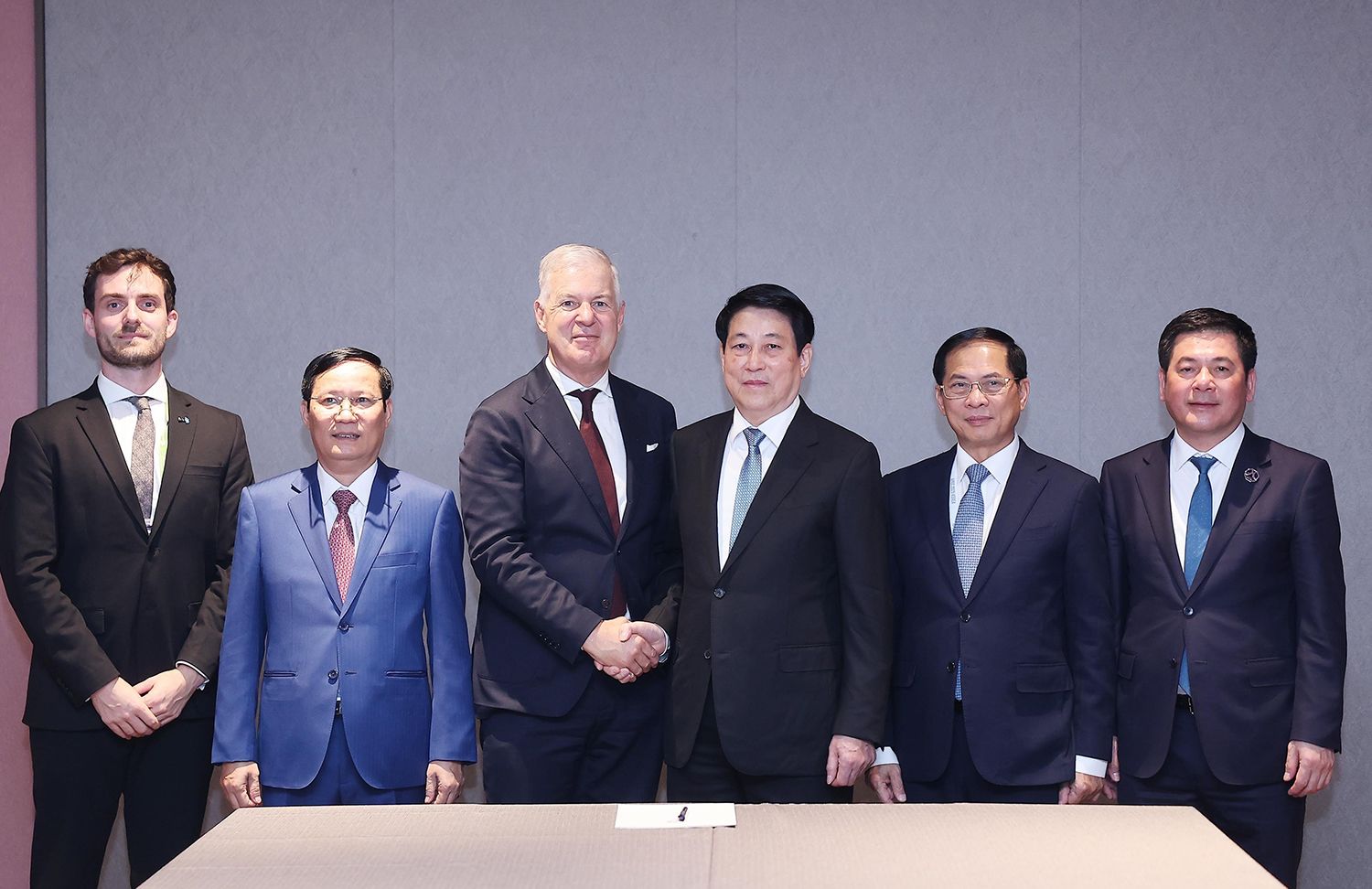 En el marco de su visita, Luong Cuong recibió al presidente del Grupo Lotte, Shin Dong Bin, a quien reiteró la voluntad de ofrecer condiciones favorables a las empresas extranjeras, incluidas las surcoreanas como Lotte, con el fin de fomentar la inversión a largo plazo en Vietnam. Al mismo tiempo, solicitó a la empresa que continúe ampliando sus inversiones y considere a Vietnam un mercado estratégico, aprovechando las ventajas de los acuerdos de libre comercio de nueva generación firmados por Vietnam.