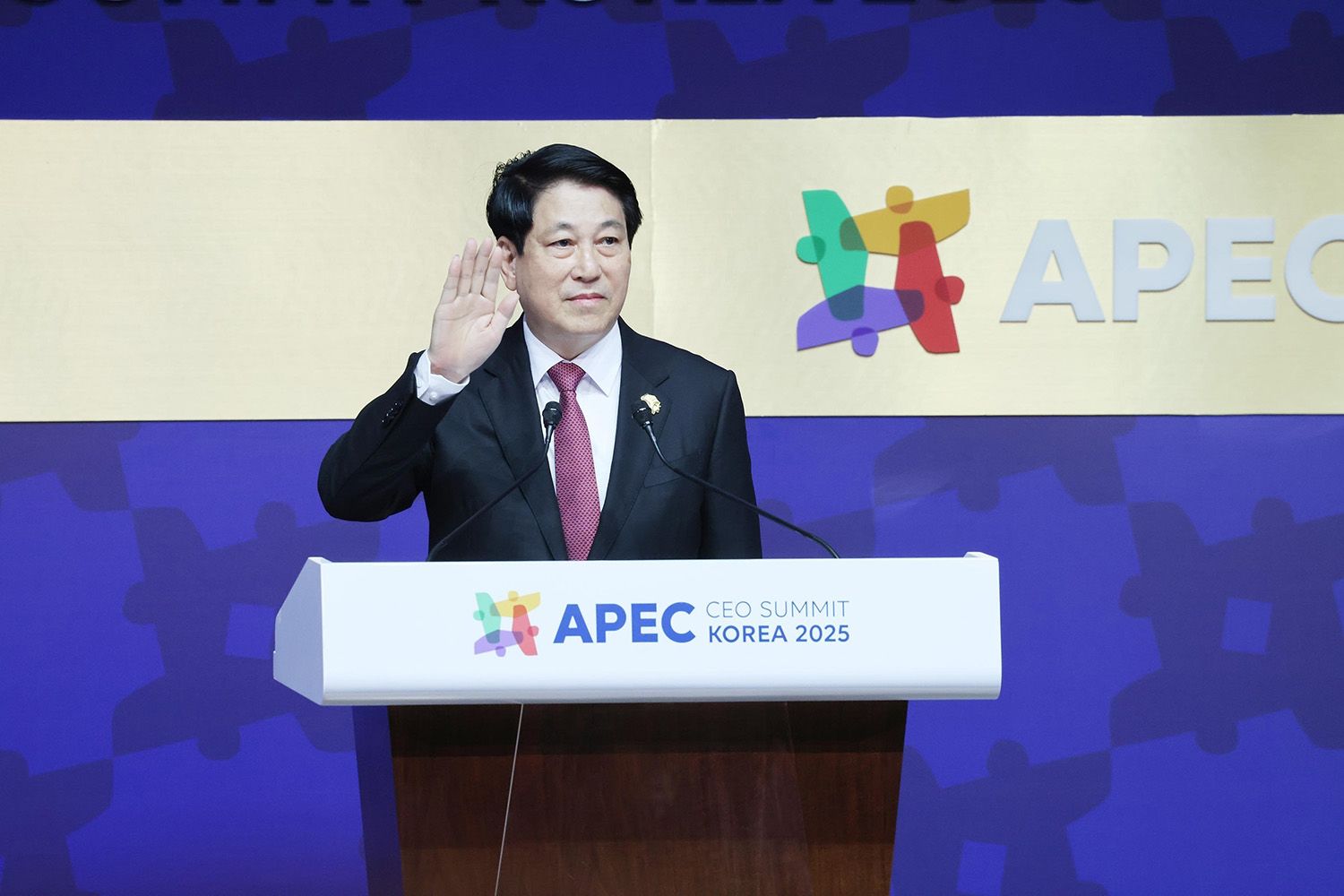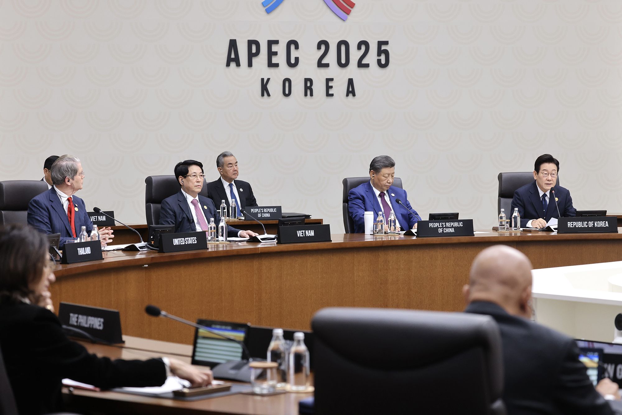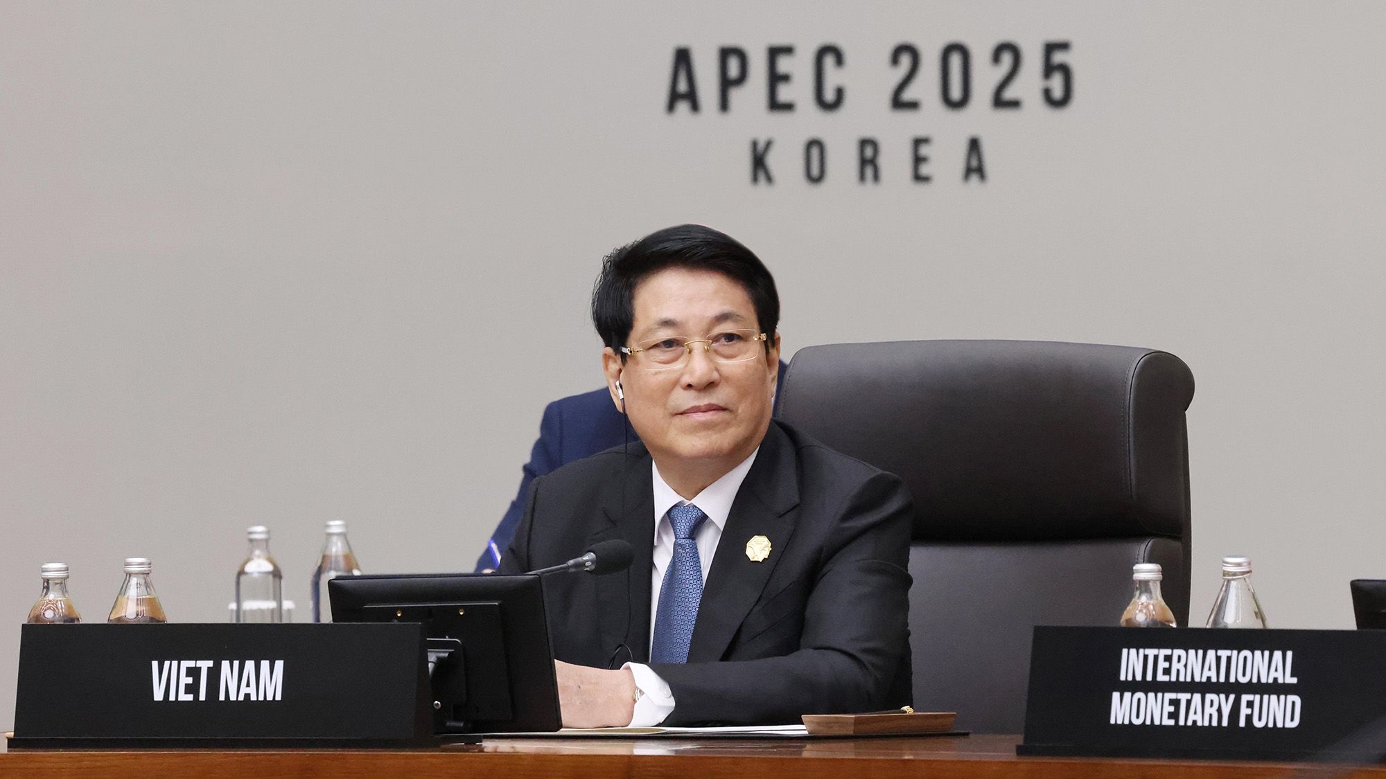 Tras la ceremonia de recibimiento a los líderes de APEC, celebrada en el Centro Internacional de Convenciones Hwabaek de Gyeongju, el mandatario vietnamita pronunció un discurso en la primera sesión de la Conferencia de Líderes de APEC 2025, a la cual asistieron dignatarios y altos funcionarios de las 21 economías miembros e invitados, entre los que se encontraban el príncipe heredero de Abu Dabi (Emiratos Árabes Unidos) y la directora gerente del Fondo Monetario Internacional.