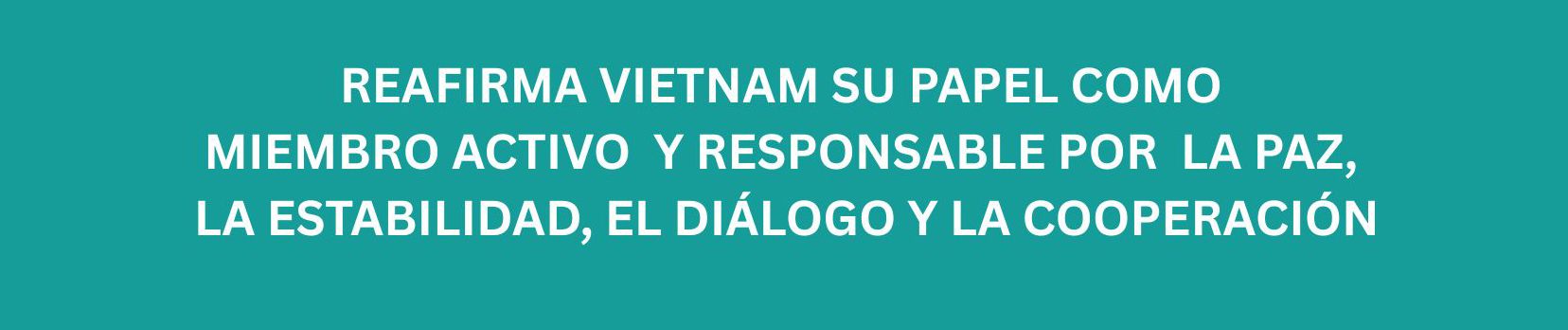 El presidente vietnamita afirmó que, consciente del valor de la paz y la independencia nacional, Vietnam está dispuesto a participar en los esfuerzos de mediación, reconciliación, resolución de conflictos, mantenimiento y consolidación de la paz, así como a contribuir activamente a la labor de la comunidad internacional de reconstrucción posconflicto. Asimismo, subrayó que la prosperidad de todos los países solo puede alcanzarse mediante una cooperación sincera, equitativa, mutuamente beneficiosa y respetuosa.