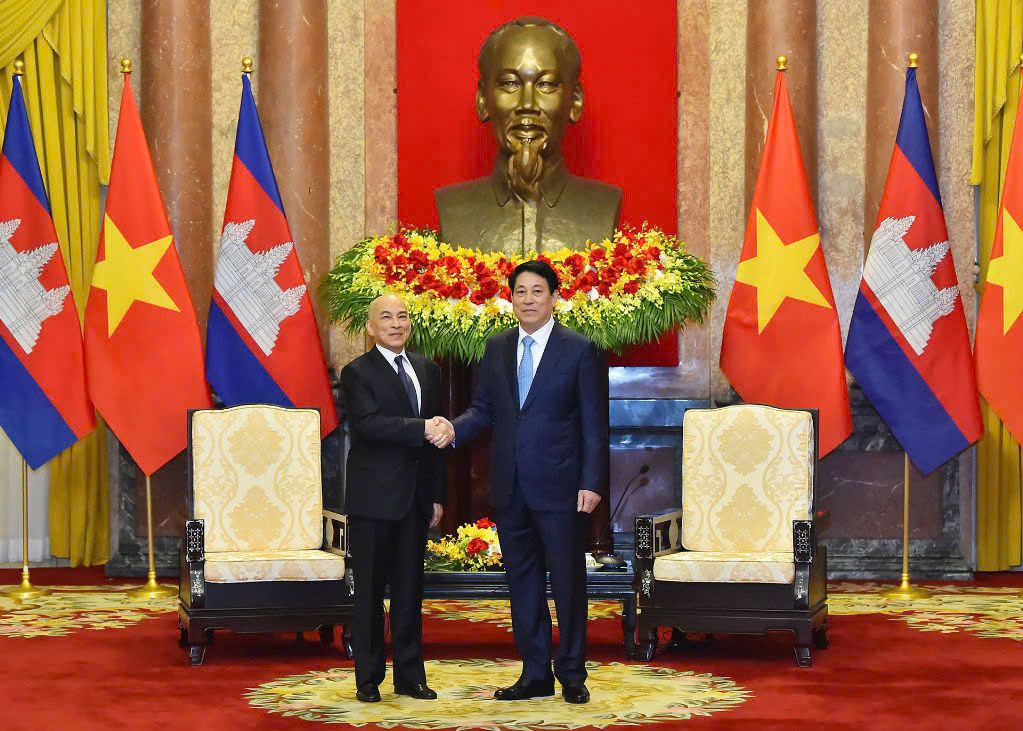 El presidente Luong Cuong recibe al rey camboyano, Norodom Sihamoni, el 28 de noviembre de 2024.