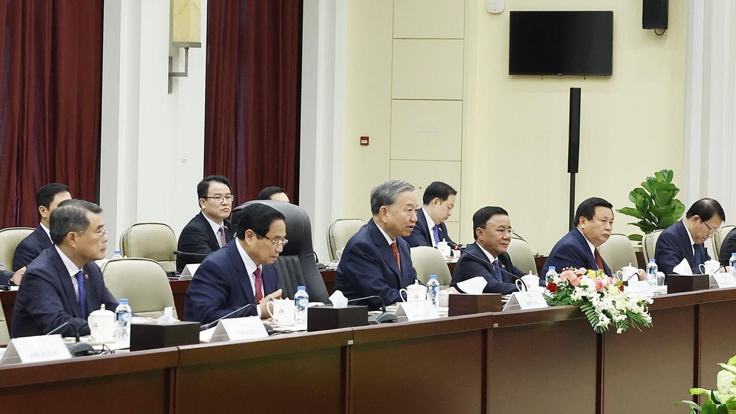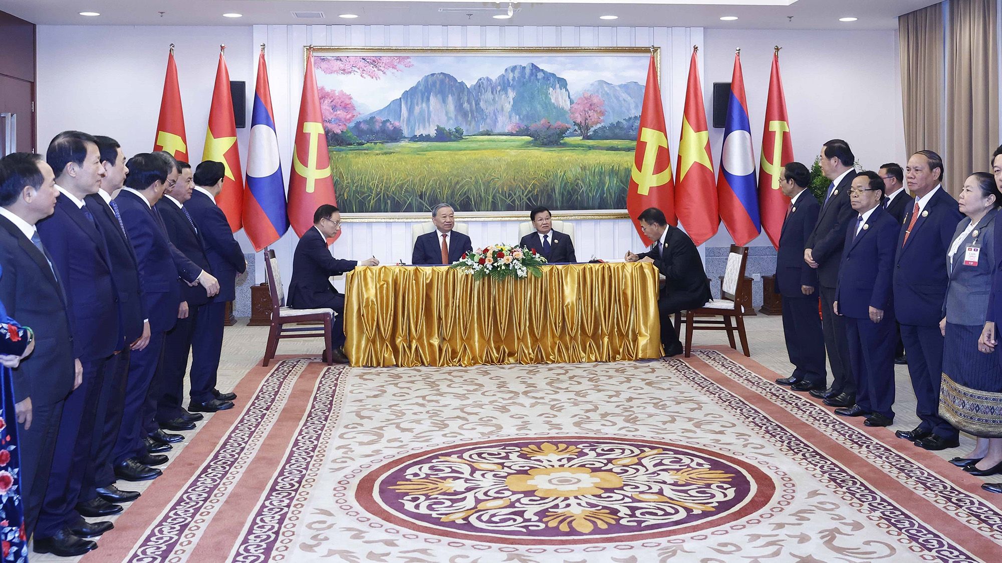 Al reunirse con el primer ministro laosiano Sonexay Siphandone, el líder partidista de Vietnam, To Lam, instó a que los respectivos gobiernos den cumplimiento a los compromisos y acuerdos de cooperación suscritos por sus líderes. Las partes valoraron los esfuerzos de los ministerios y sectores de los dos países por finalizar varios proyectos coincidiendo con esta visita, como el Parque de la Amistad Vietnam-Laos en Vientián y el Hospital de la Amistad en la provincia de Houaphan.