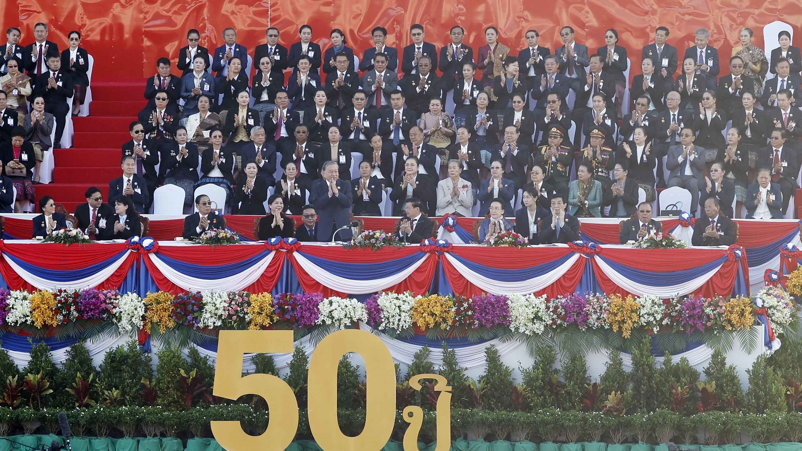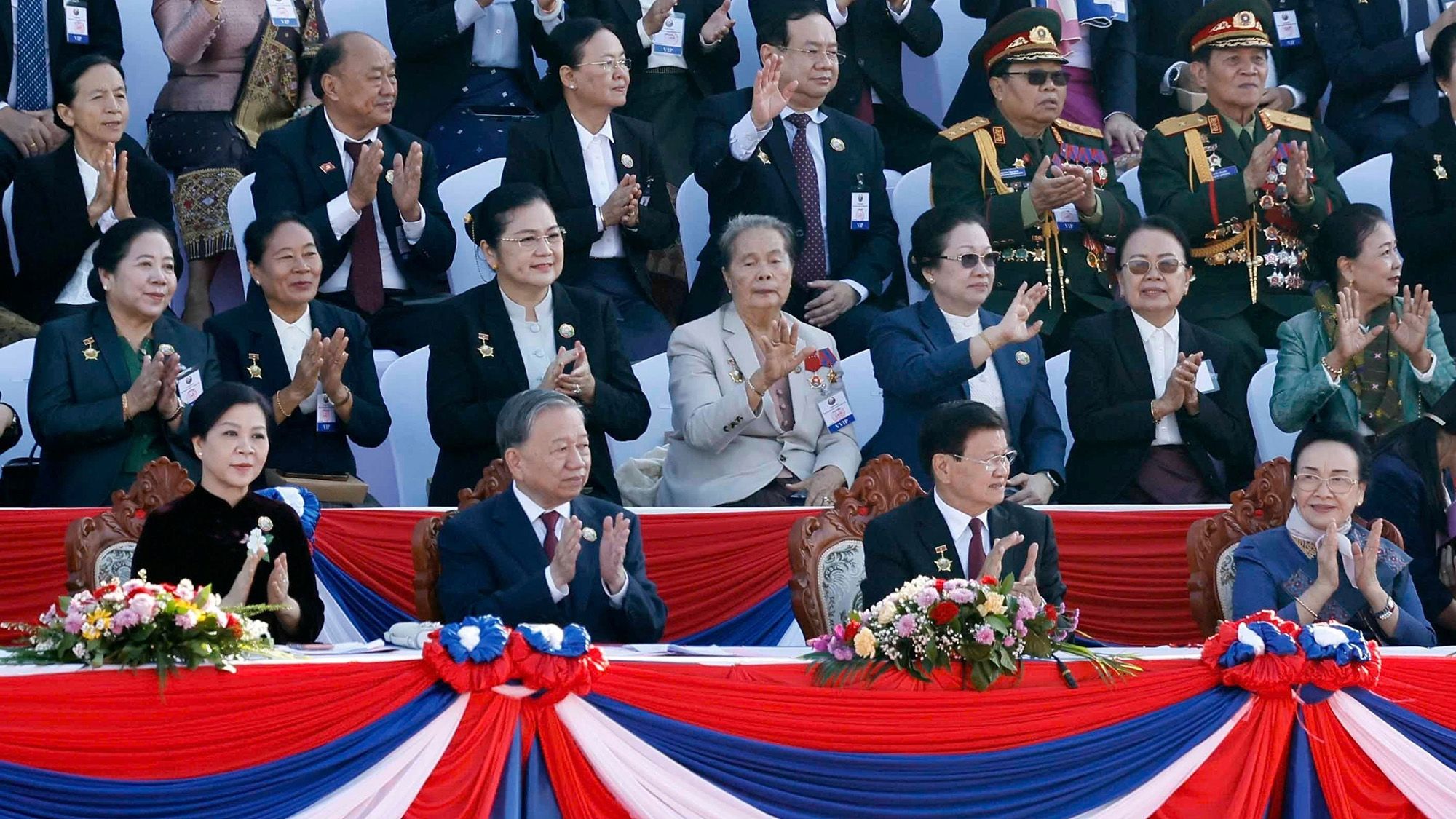 A la solemne ceremonia por el 50º aniversario del Día Nacional de Laos, efectuada en la Plaza That Luang, en Vientián, asistieron el secretario general To Lam, su esposa y la delegación vietnamita de alto nivel.