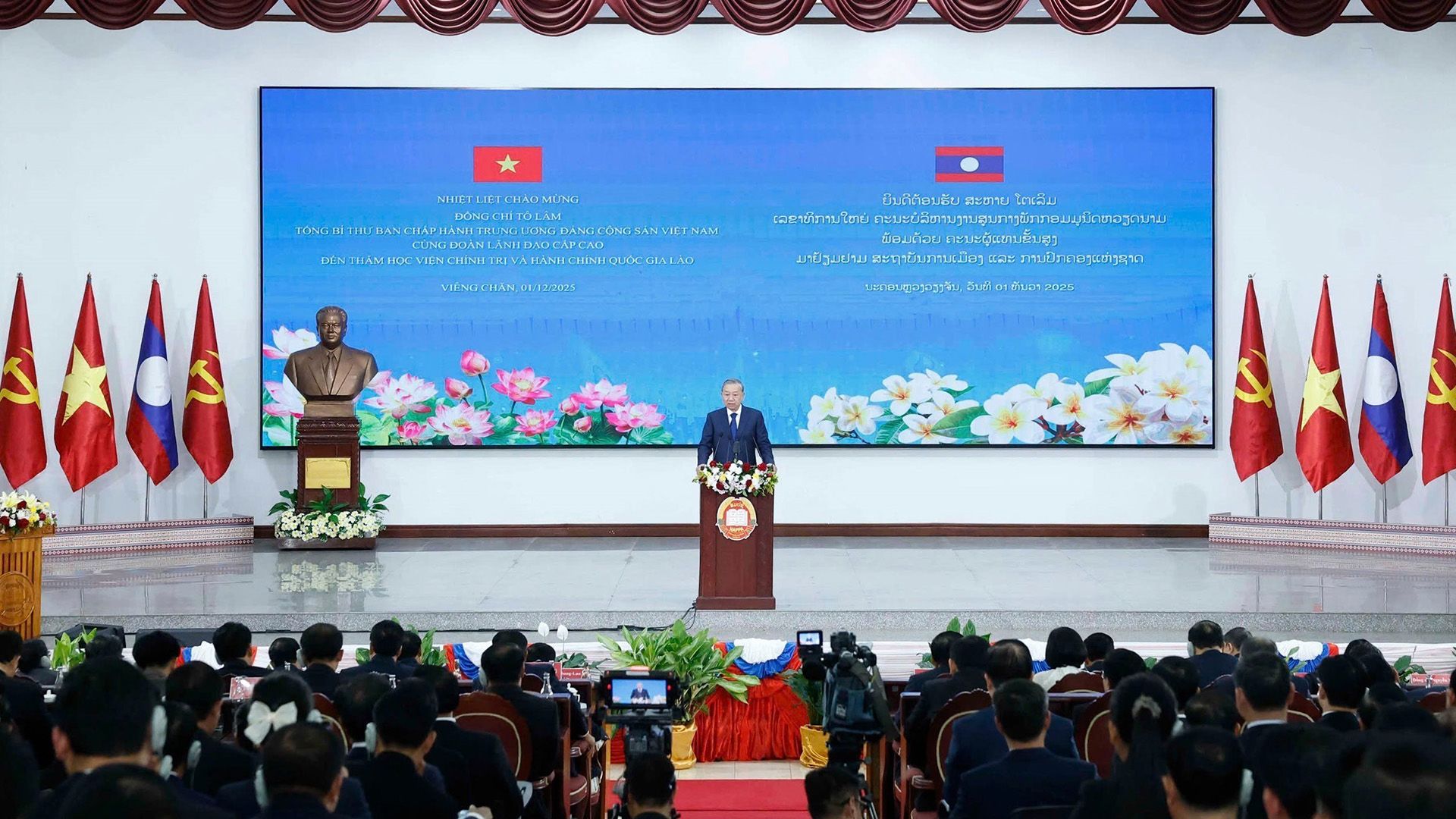 En la Academia Nacional de Ciencias Políticas y Administración Pública de Laos, To Lam pronunció un discurso político bajo el anunciado de “Heredar la gran amistad, cultivar la solidaridad especial, consolidar la cooperación integral y promover la vinculación estratégica Vietnam-Laos en la nueva etapa”.