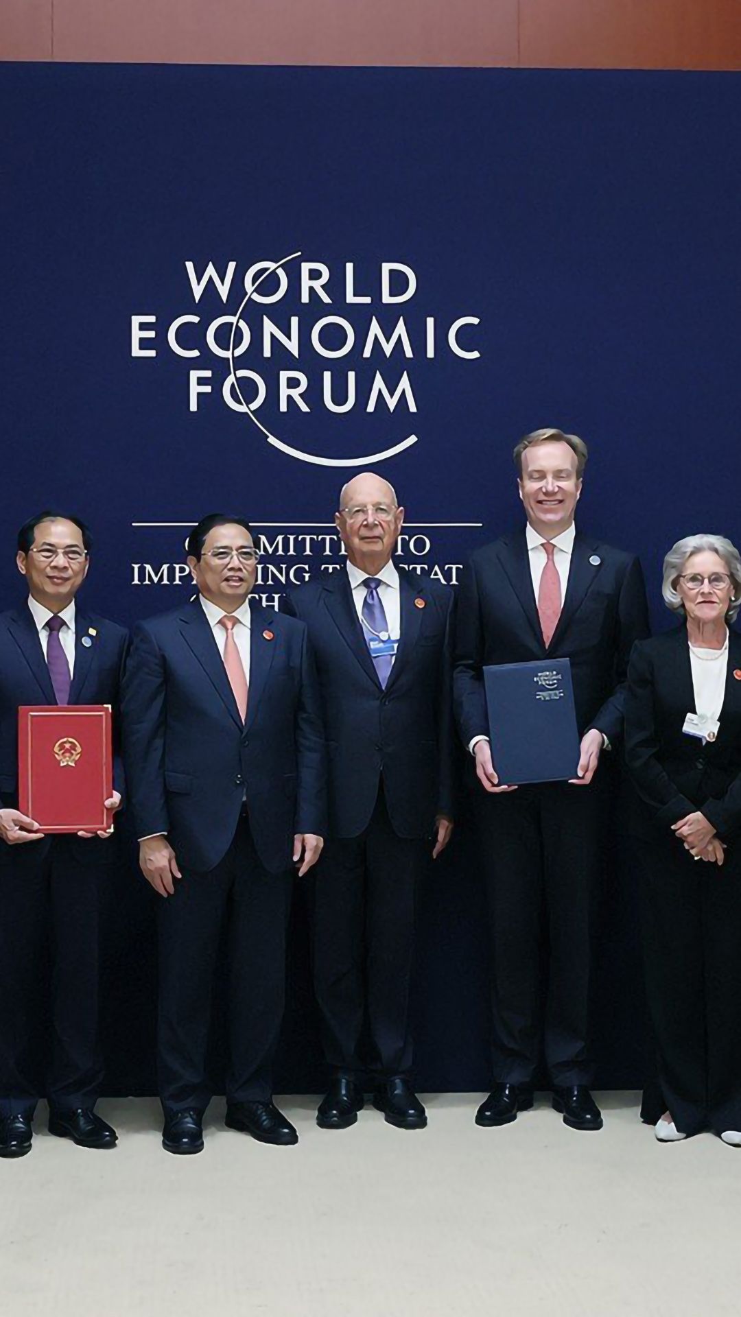 Igualmente, invitó al premier vietnamita a asistir a la reunión anual del FEM, que tendrá lugar en enero de 2024 en Davos, Suiza. Por su parte, Minh Chinh invitó a Schwab y los ejecutivos del FEM a visitar Hanói y dirigirse a los jóvenes vietnamitas para motivarlos a seguir las nuevas tendencias de desarrollo en el mundo. Ambas partes coincidieron en aumentar los intercambios de delegaciones.