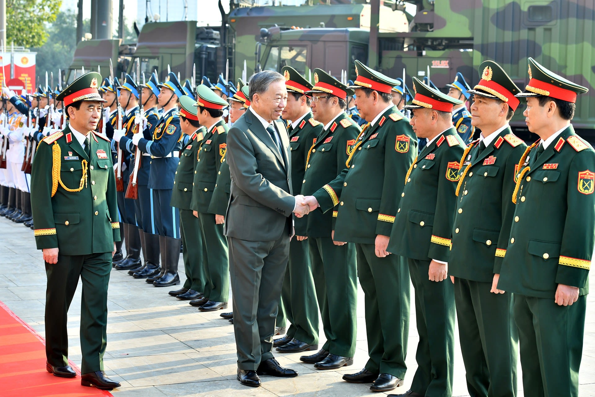 El secretario general del Partido Comunista de Vietnam, To Lam, asiste a la ceremonia para conmemorar el 80 aniversario de la fundación del Ejército Popular del país.
