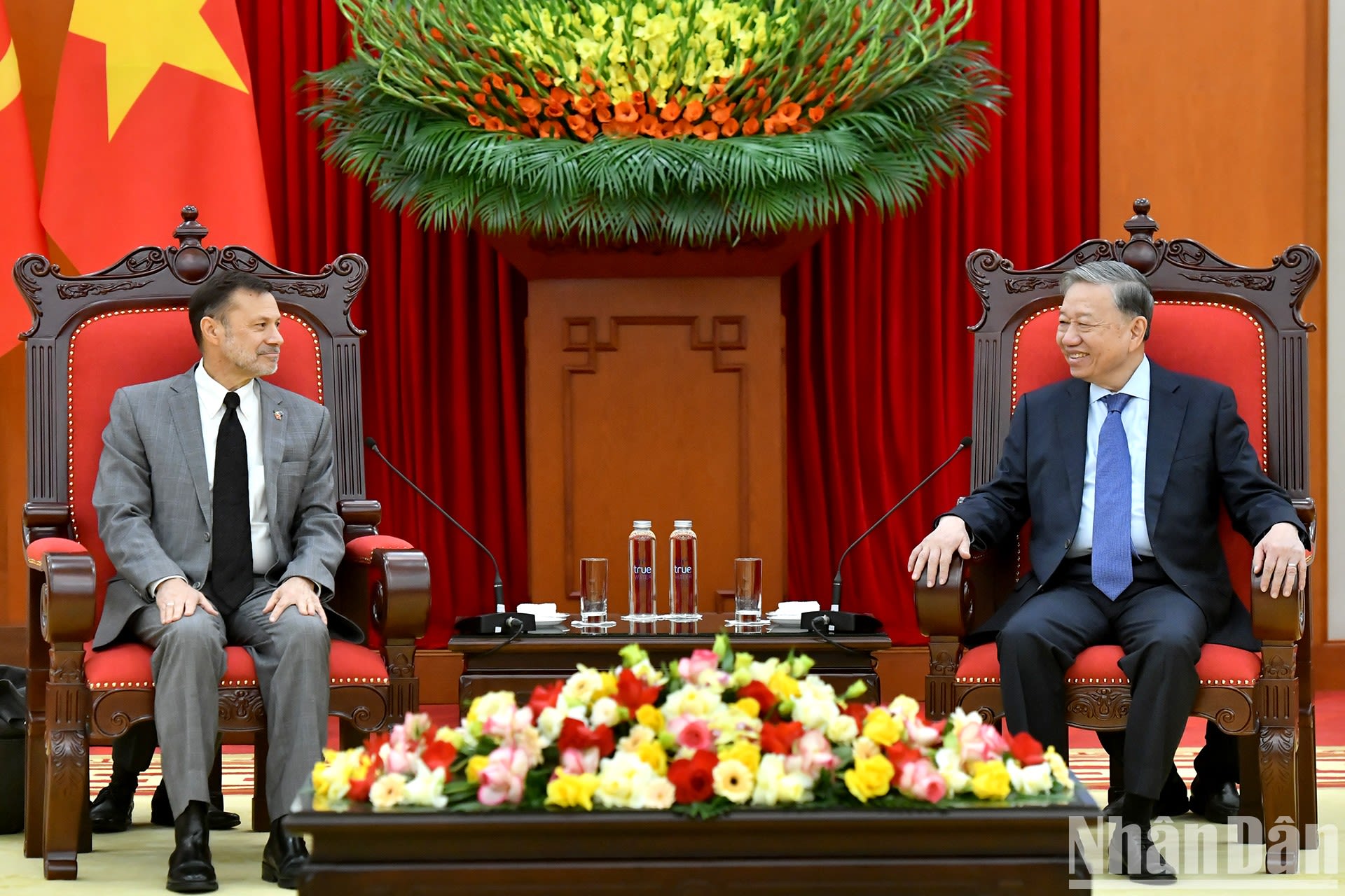 El secretario general del Partido Comunista de Vietnam, To Lam, recibe al embajador de Australia, Andrew Goledzinowski.
