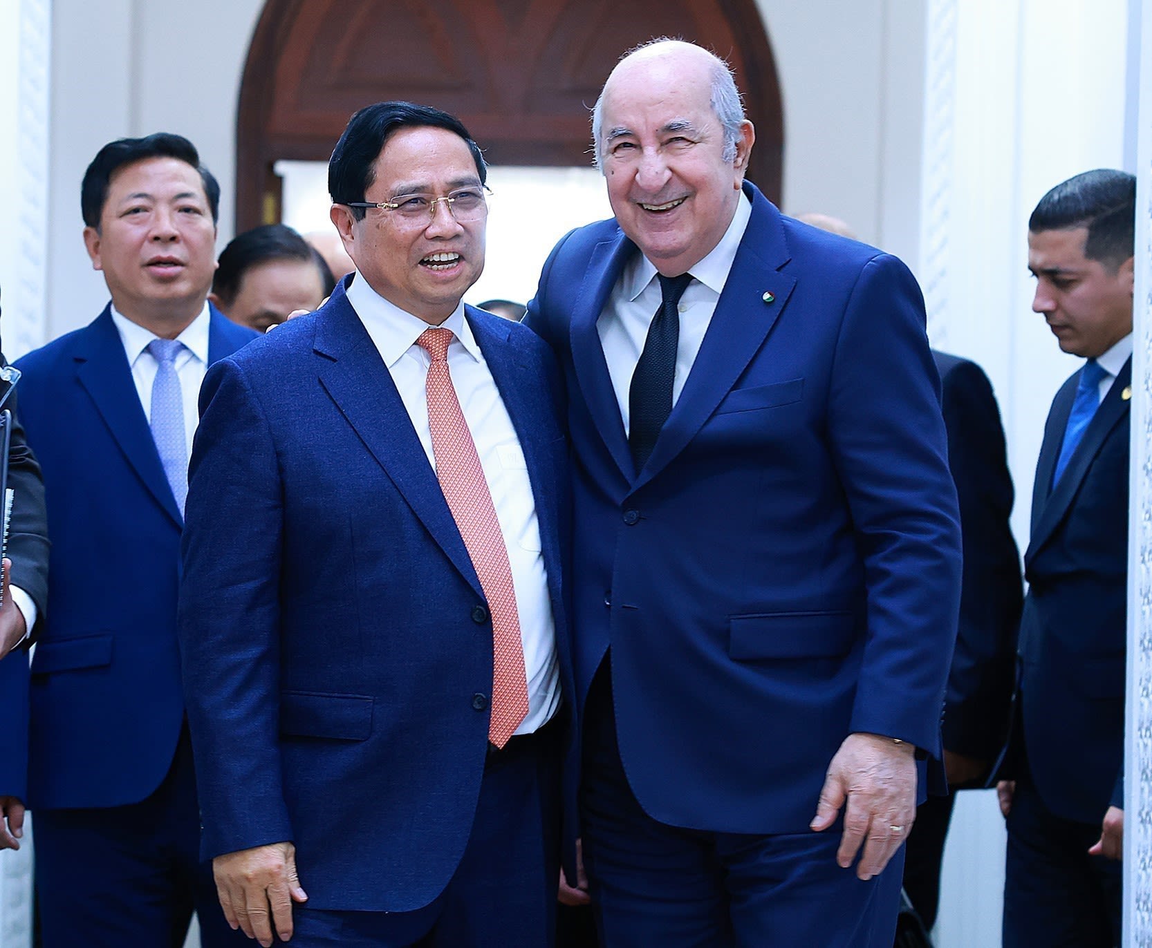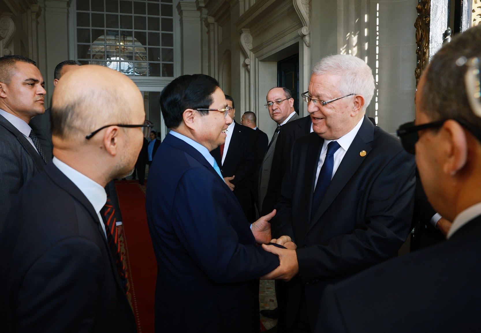 En los encuentros con el presidente de la Asamblea Popular Nacional (Cámara Baja), Ibrahim Boughali, y con el presidente del Consejo de la Nación (Cámara Alta), Azzouz Nasri, el primer ministro Pham Minh Chinh expresó su deseo de que ambas cámaras ayuden a los respectivos Gobiernos a hacer efectiva la Asociación Estratégica. En particular, pidió la pronta ratificación de los acuerdos firmados, especialmente los relativos a impuestos, inversión y comercio, así como la expansión de la colaboración en los campos de la ciencia y la tecnología, la innovación y la transformación digital, entre otros ámbitos.