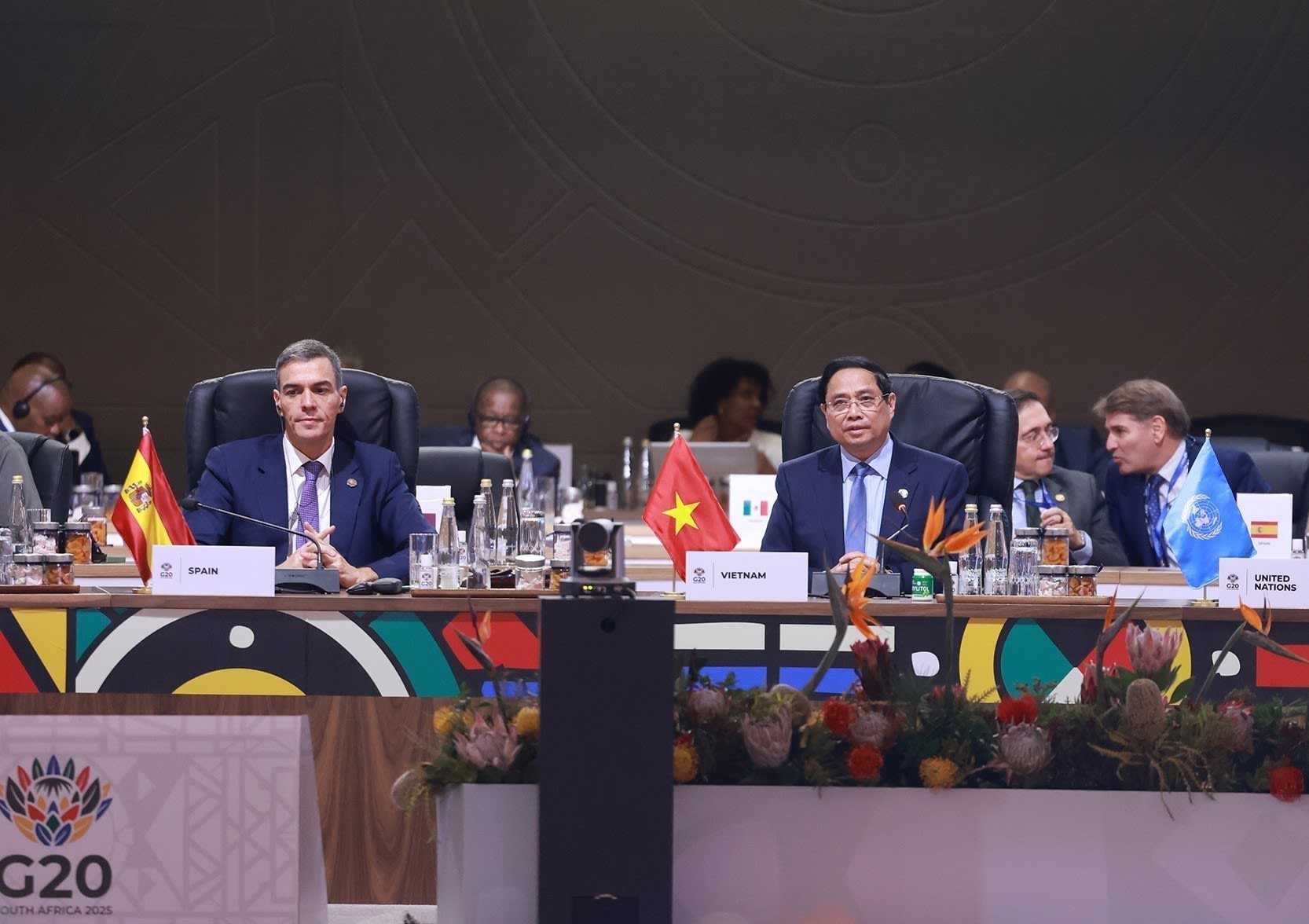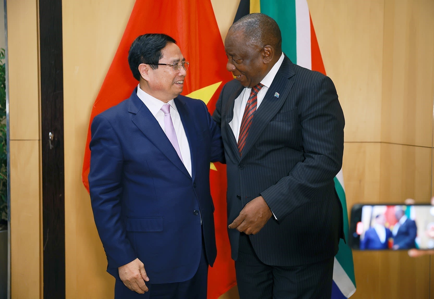 Extiendo mi más calurosa bienvenida al primer ministro Pham Minh Chinh y la delegación de alto nivel de Vietnam a la Cumbre del G20. La presencia de ustedes demuestra la solidaridad y el entusiasta apoyo de Vietnam hacia Sudáfrica. Sudáfrica siempre considera a Vietnam como un amigo tradicional e íntimo, y un socio de primera categoría en Asia.