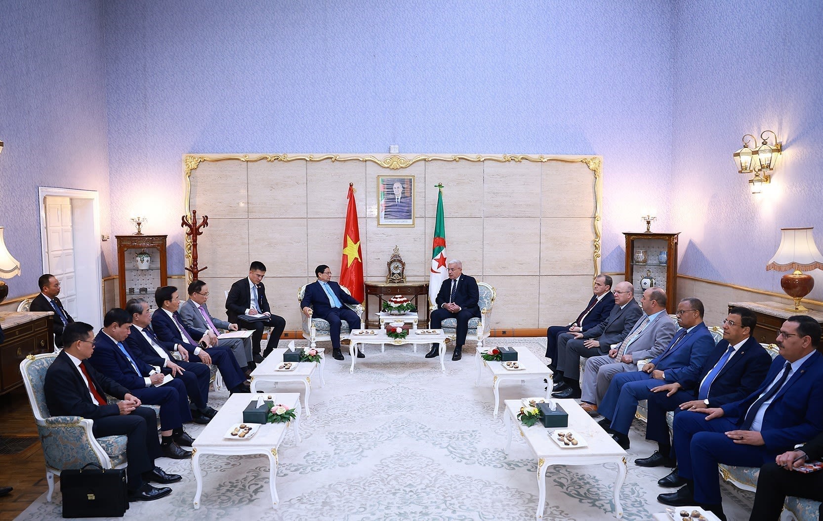 El primer ministro de Vietnam, Pham Minh Chinh, se reúne con el presidente de Argelia, Abdelmadjid Tebboune.