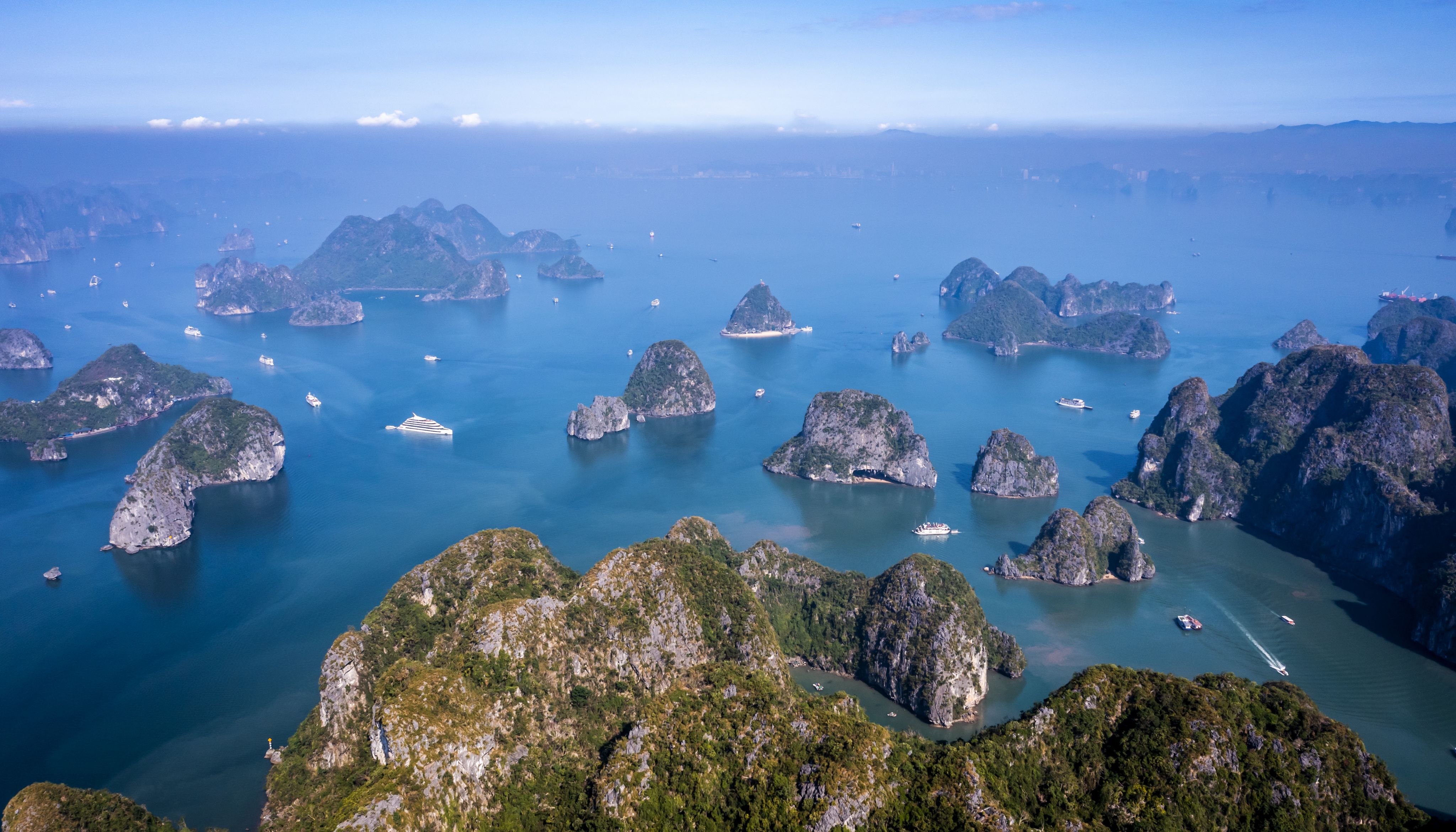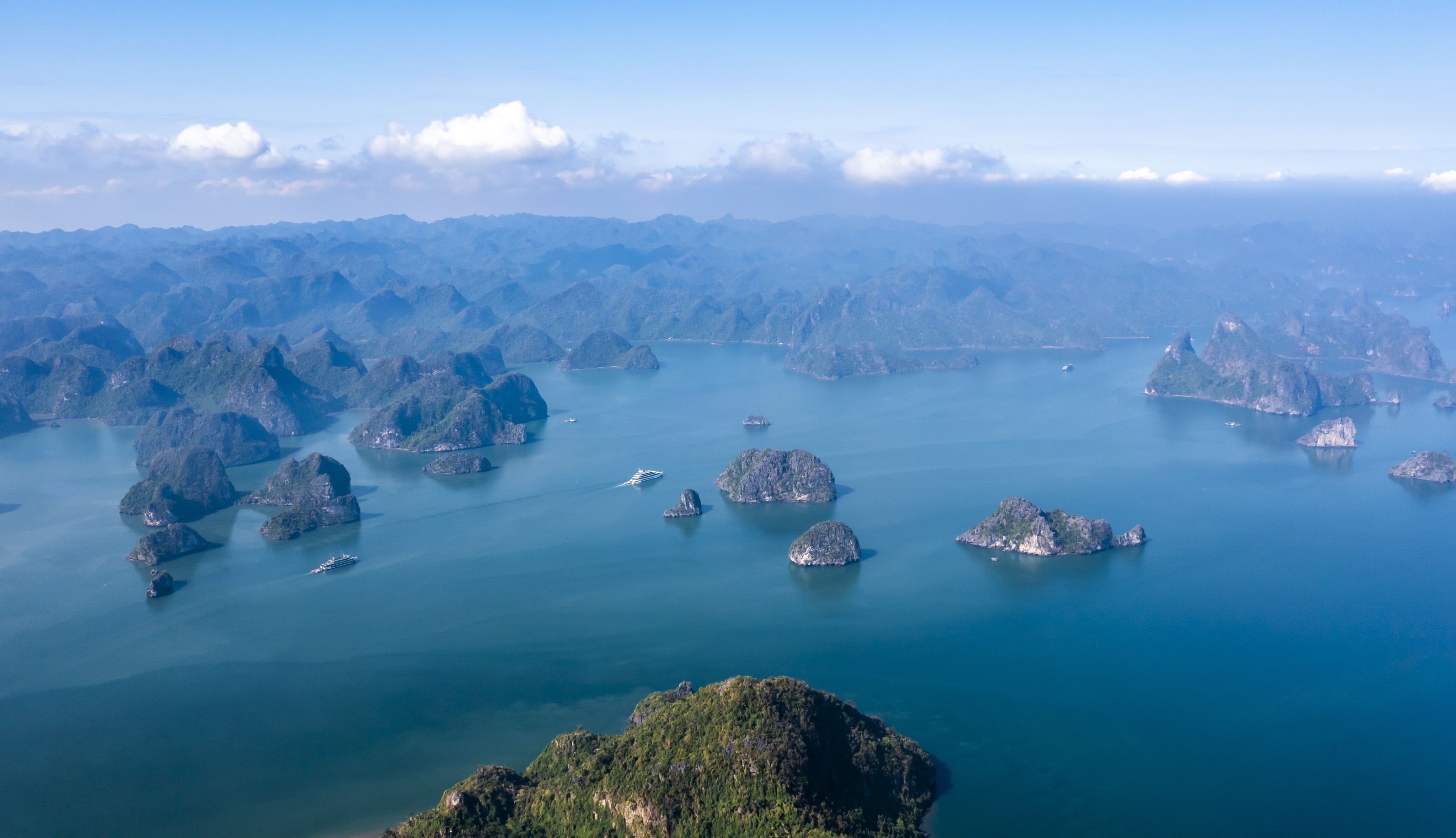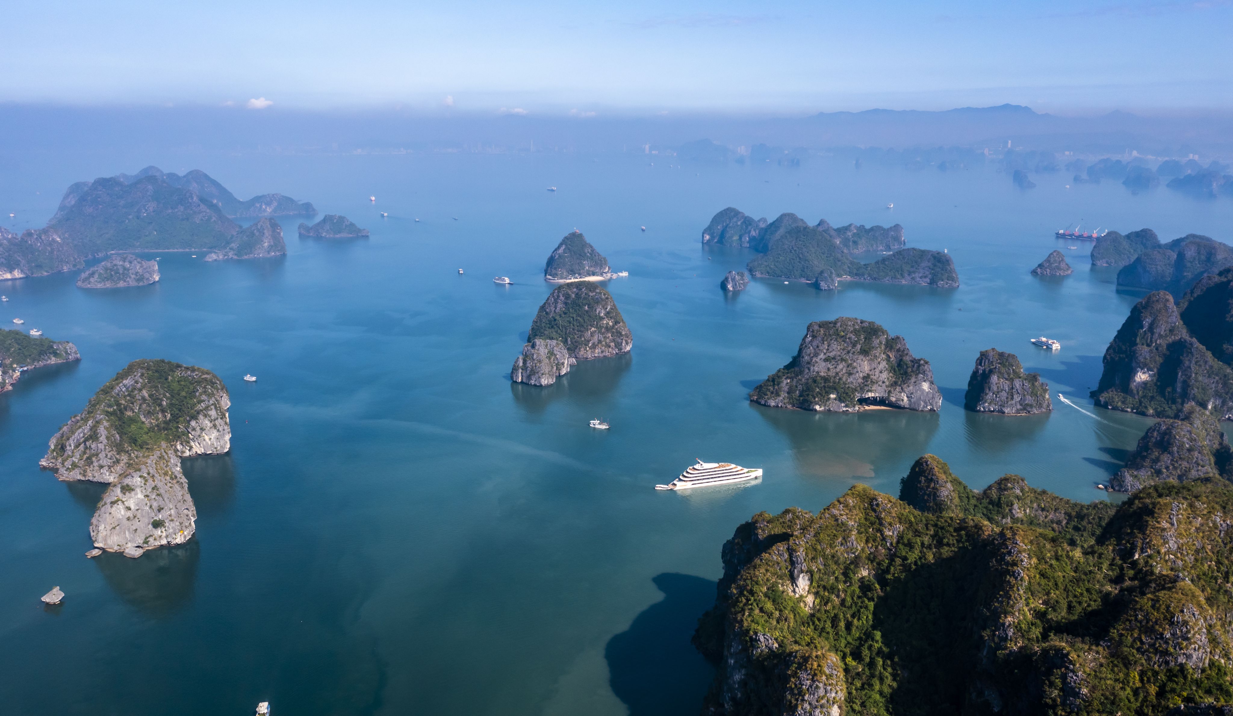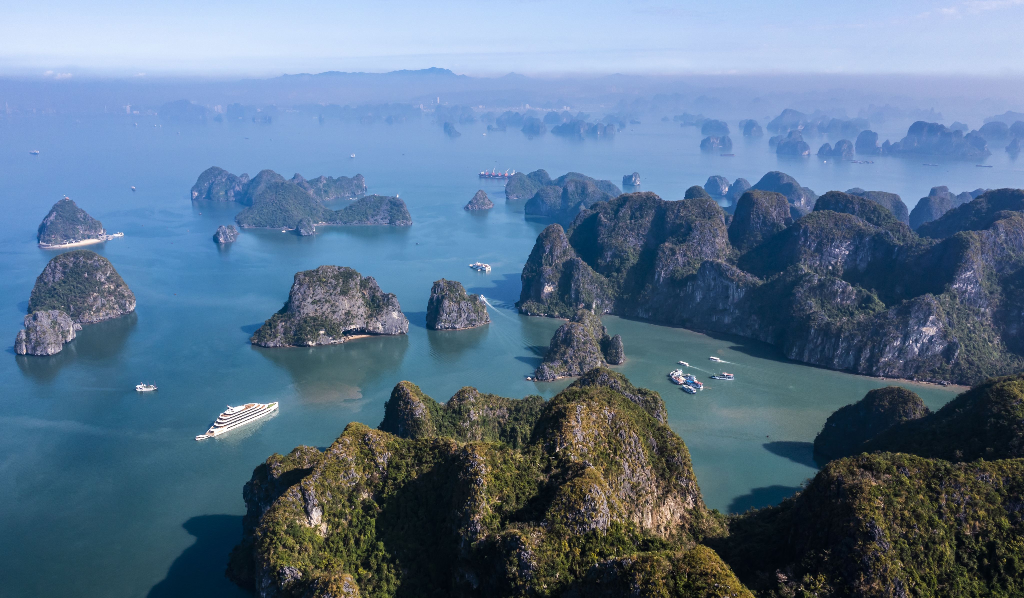 Este Patrimonio Natural interprovincial está compuesto por mil 133 islas de piedra caliza de diversas formas cubiertas de una rica vegetación, de las cuales 775 se encuentran en la bahía de Ha Long y 358 en el archipiélago de Cat Ba.