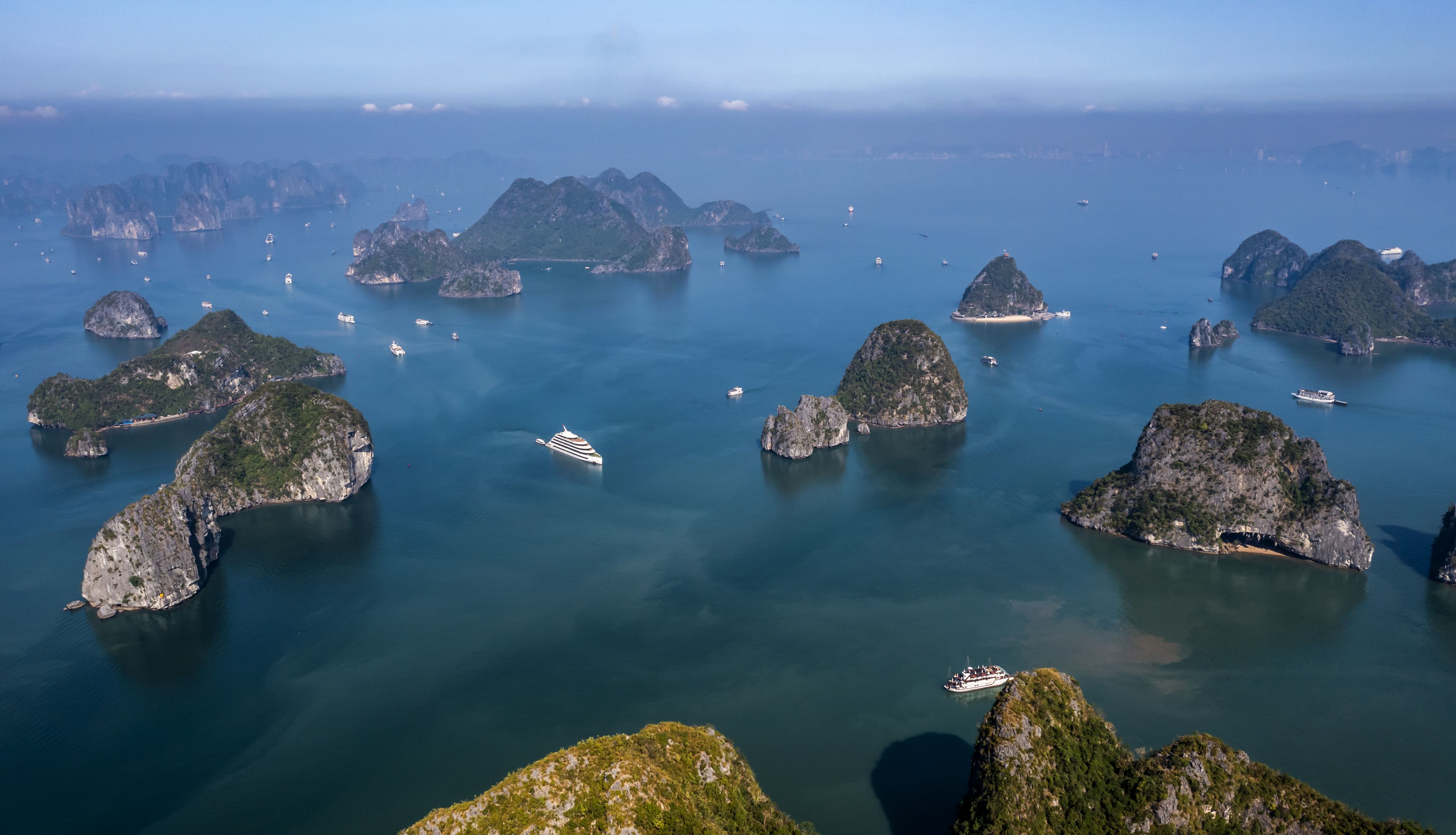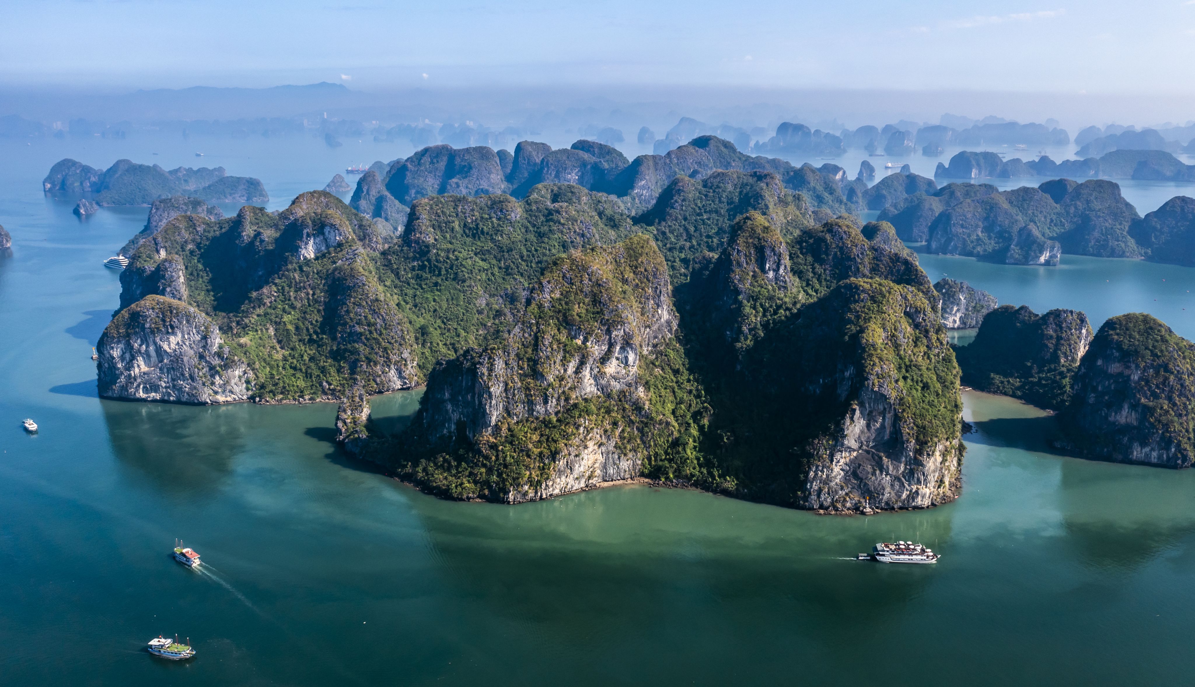 El complejo de la bahía de Ha Long y el archipiélago de Cat Ba fueron declarados por la Unesco como Patrimonio Natural Mundial, ya que poseen islas de piedra caliza cubiertas de vegetación y escarpados acantilados que se elevan sobre el mar junto con las cuevas kársticas.