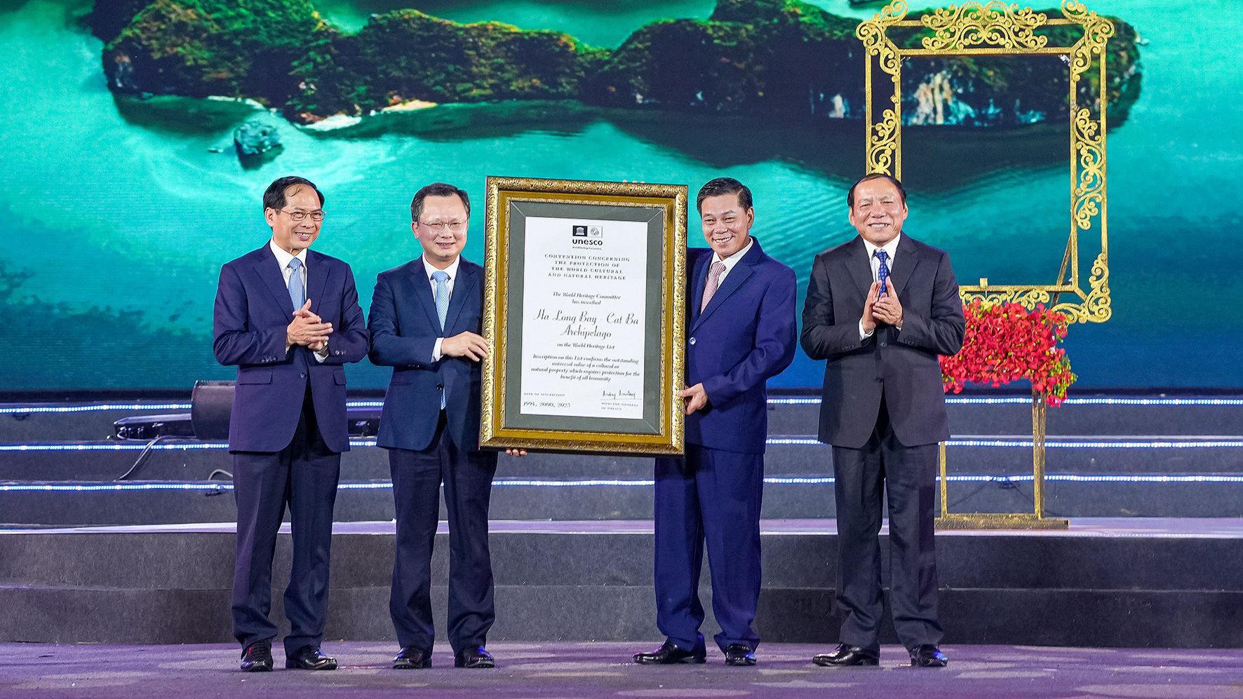 Ceremonia de entrega a la bahía de Ha Long del segundo certificado de Patrimonio Natural Mundial.