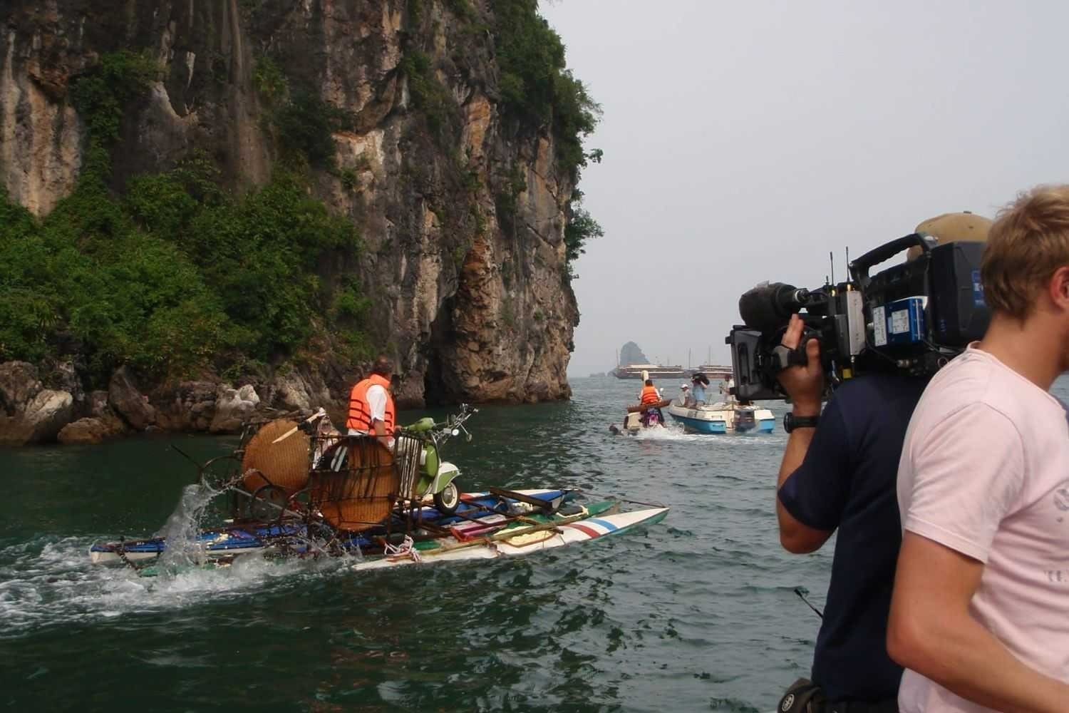 El equipo de rodaje de Top Gear: Vietnam Special en la bahía de Ha Long.