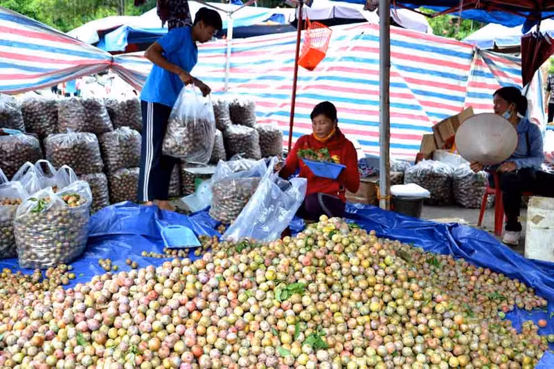 Los agricultores llevan ciruelas de Tam Hoa al pueblo de Bac Ha para venderlas a turistas y comerciantes de todo el país.