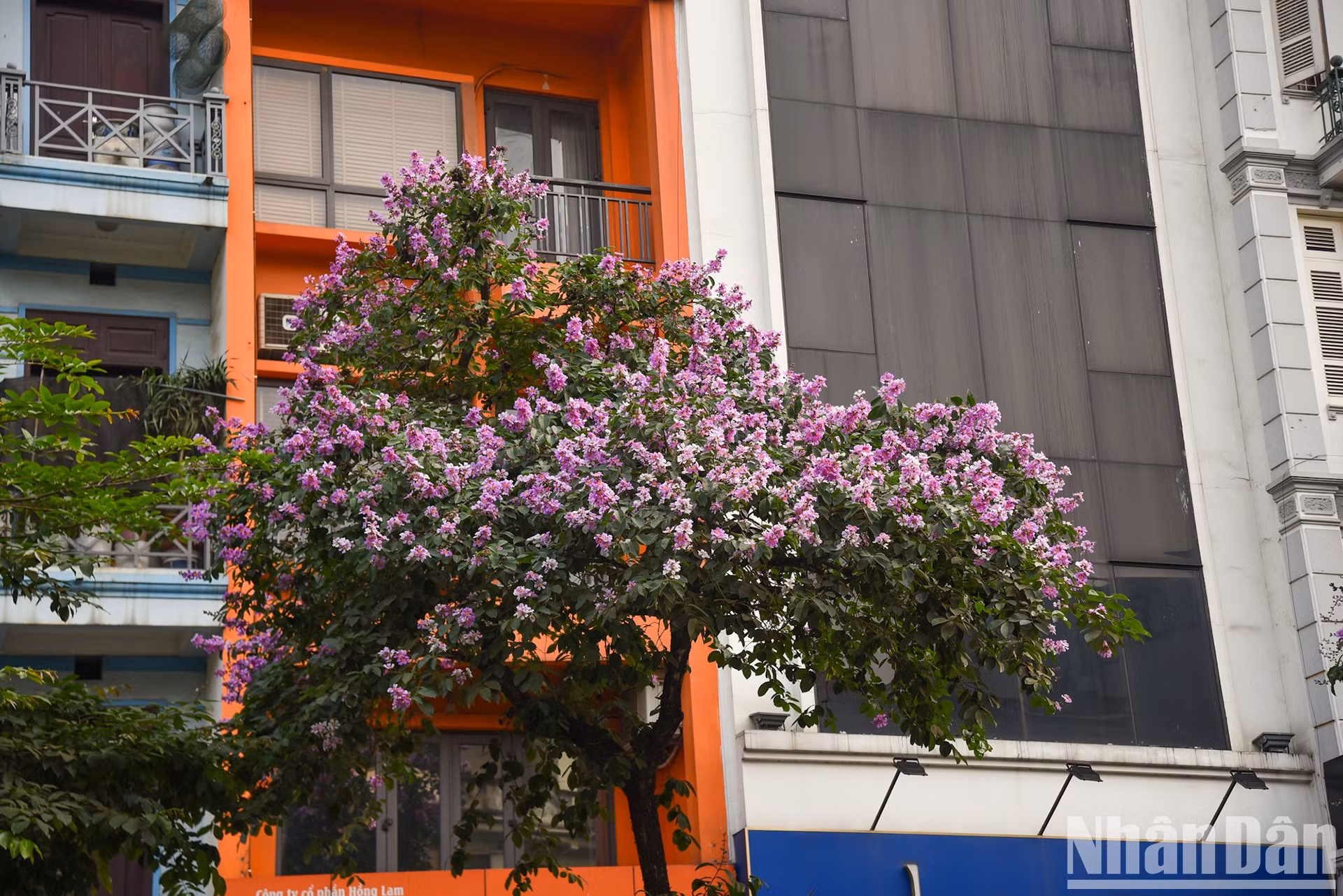 | Un árbol de Lagerstroemia Speciosa en la calle de Kim Ma, distrito de Ba Dinh. |